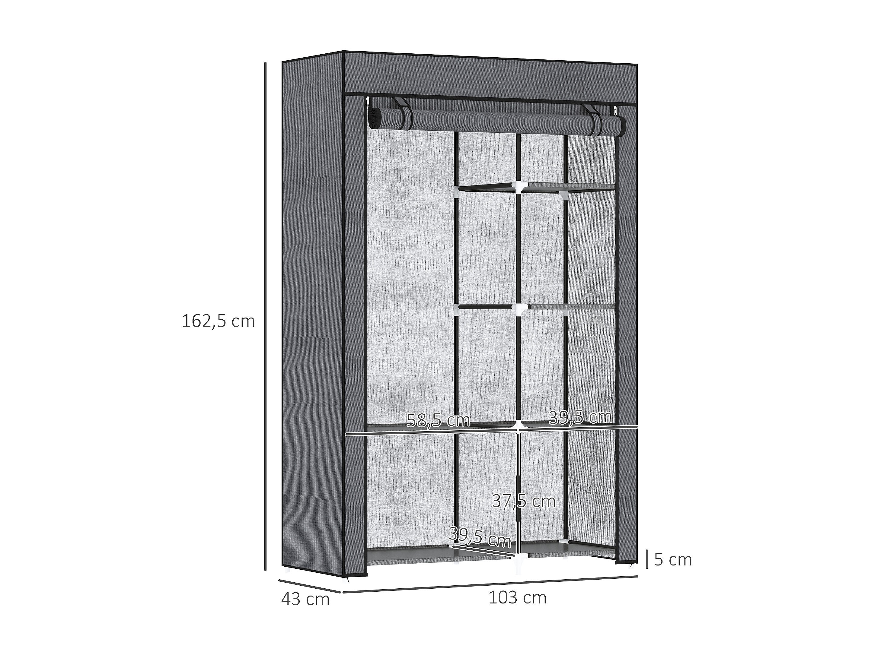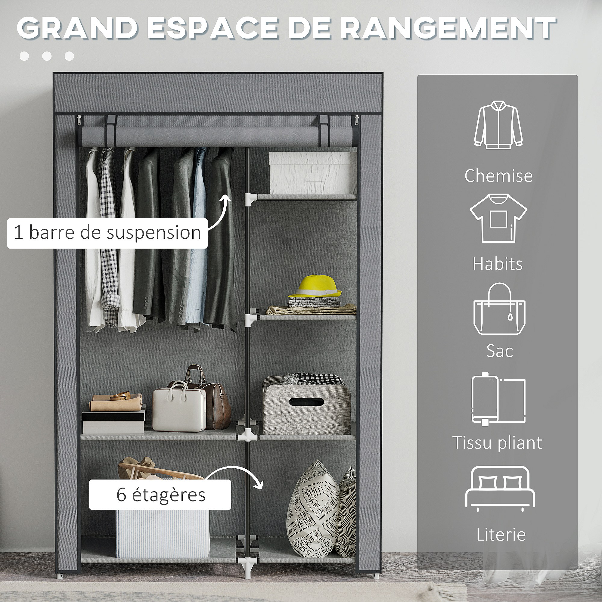 Armoire penderie multi-rangement - 6 étagères, 1 barre - dim. 103L x 43l x 162,5H cm - acier noir non tissé gris