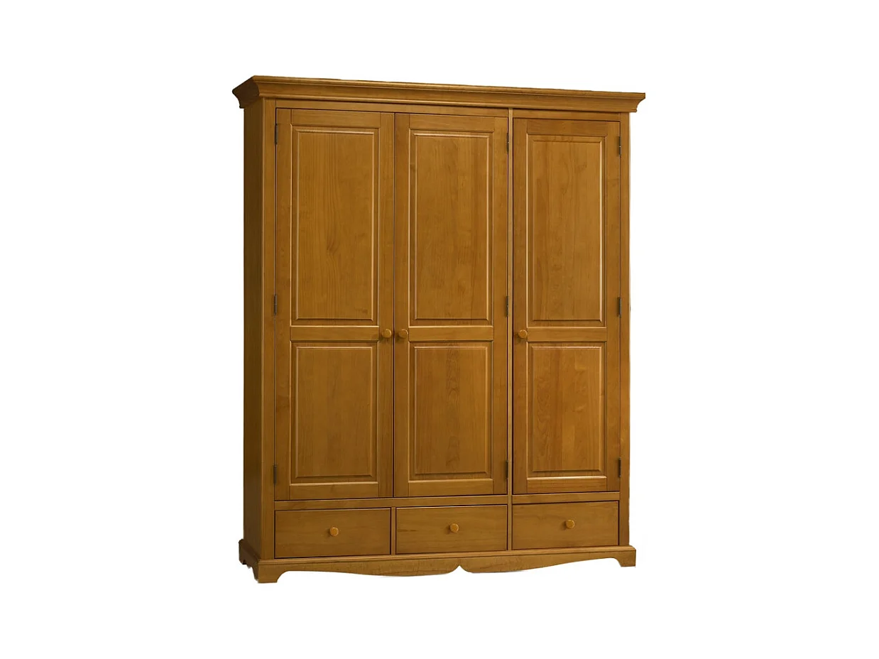 Armoire Penderie Pin Miel 3 Portes 3 Tiroirs 6 Niches L 164.3 H 194.8 P 54.5 cm