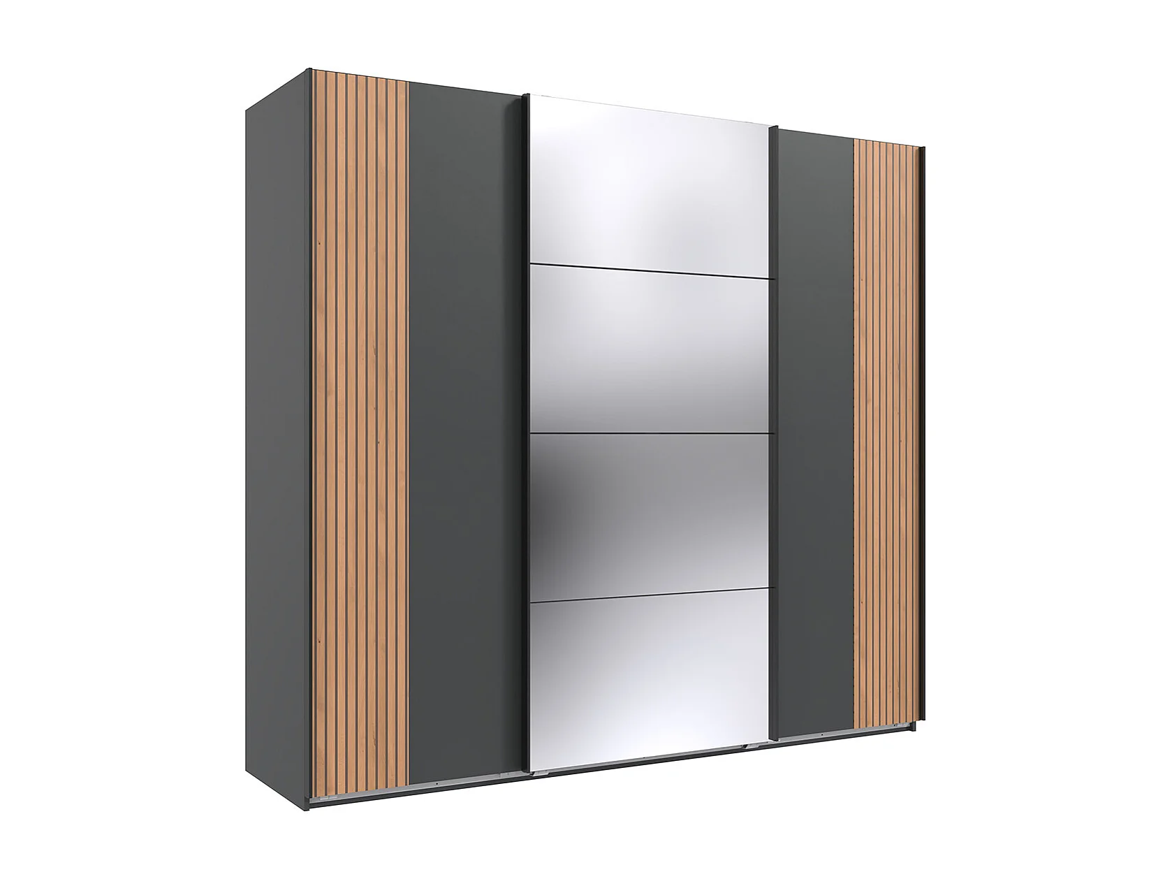 Armoire Placard avec portes coulissantes coloris graphite, rechampis imitation chêne Artisan