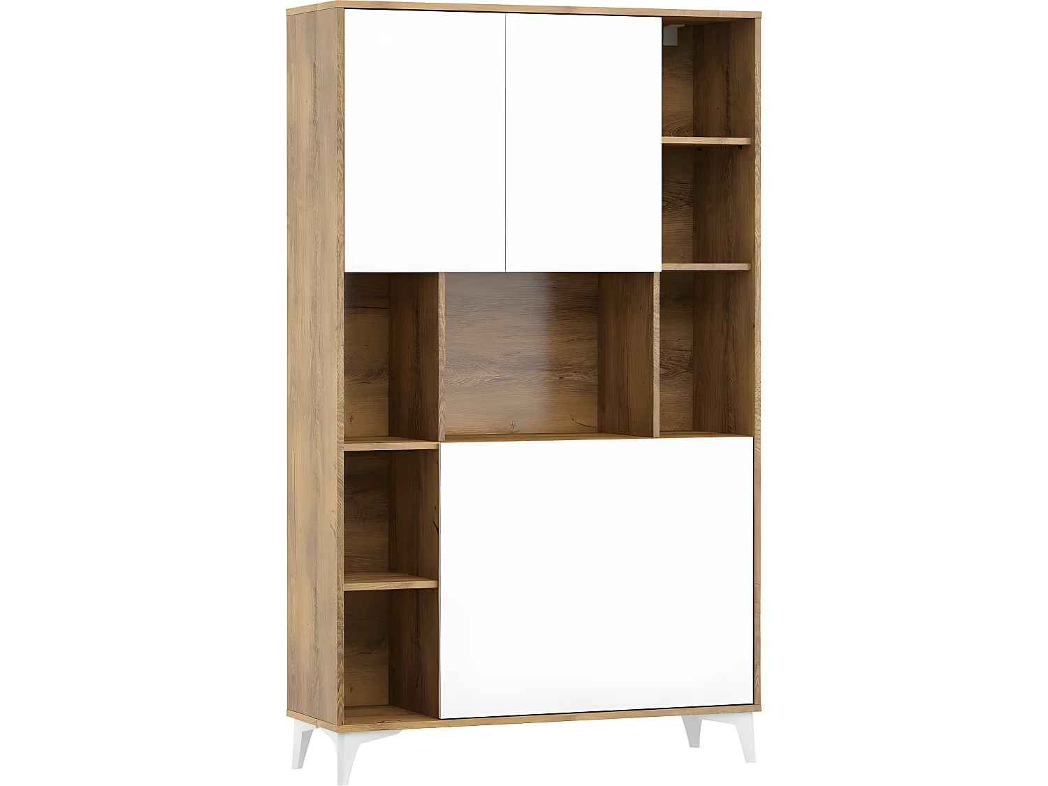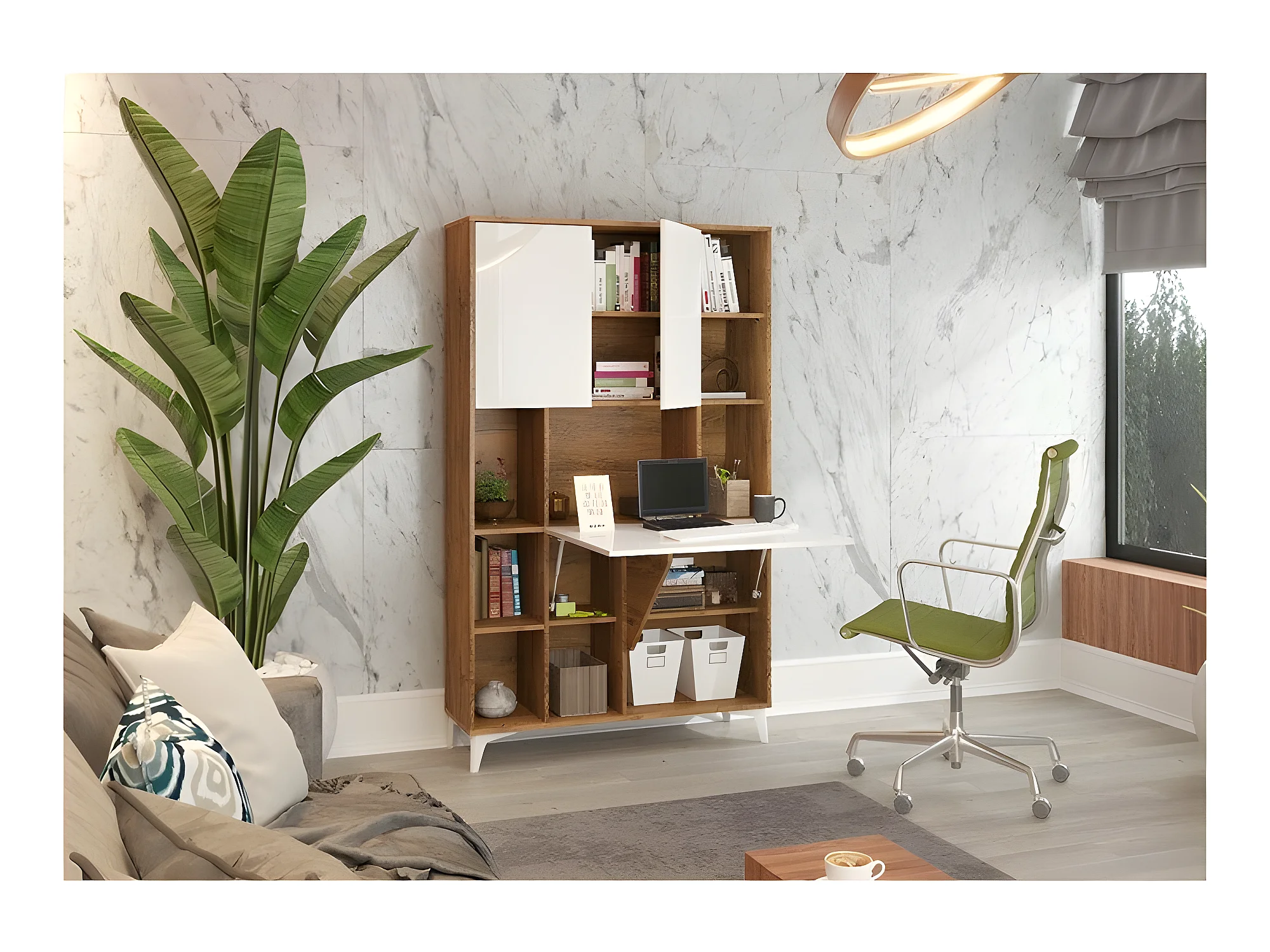 Armoire Placard Convertible en bureau et table Home office 175x105x34cm « Meggie 2-Blanc brillant (front)/Chêne foncé(corps)»