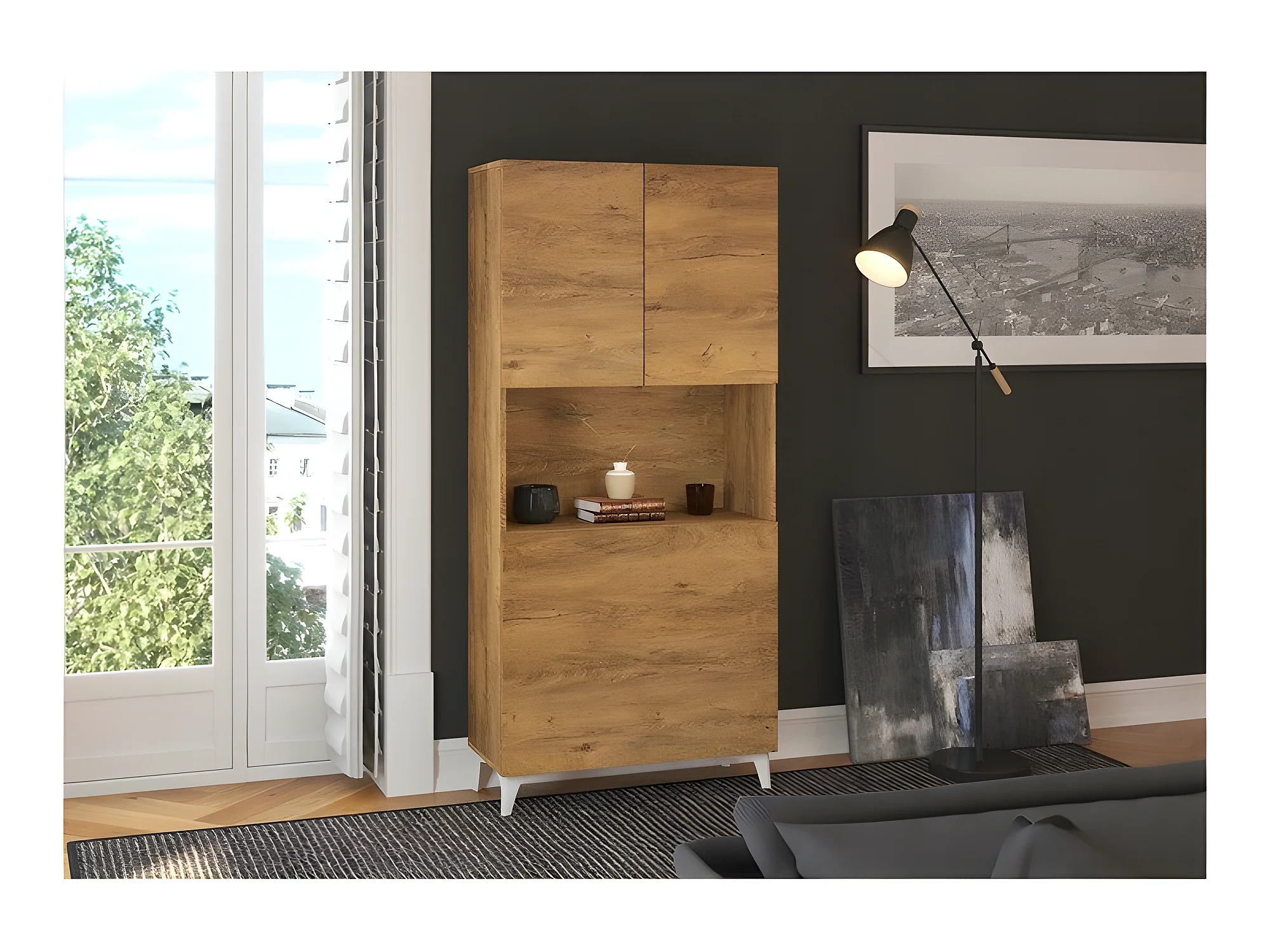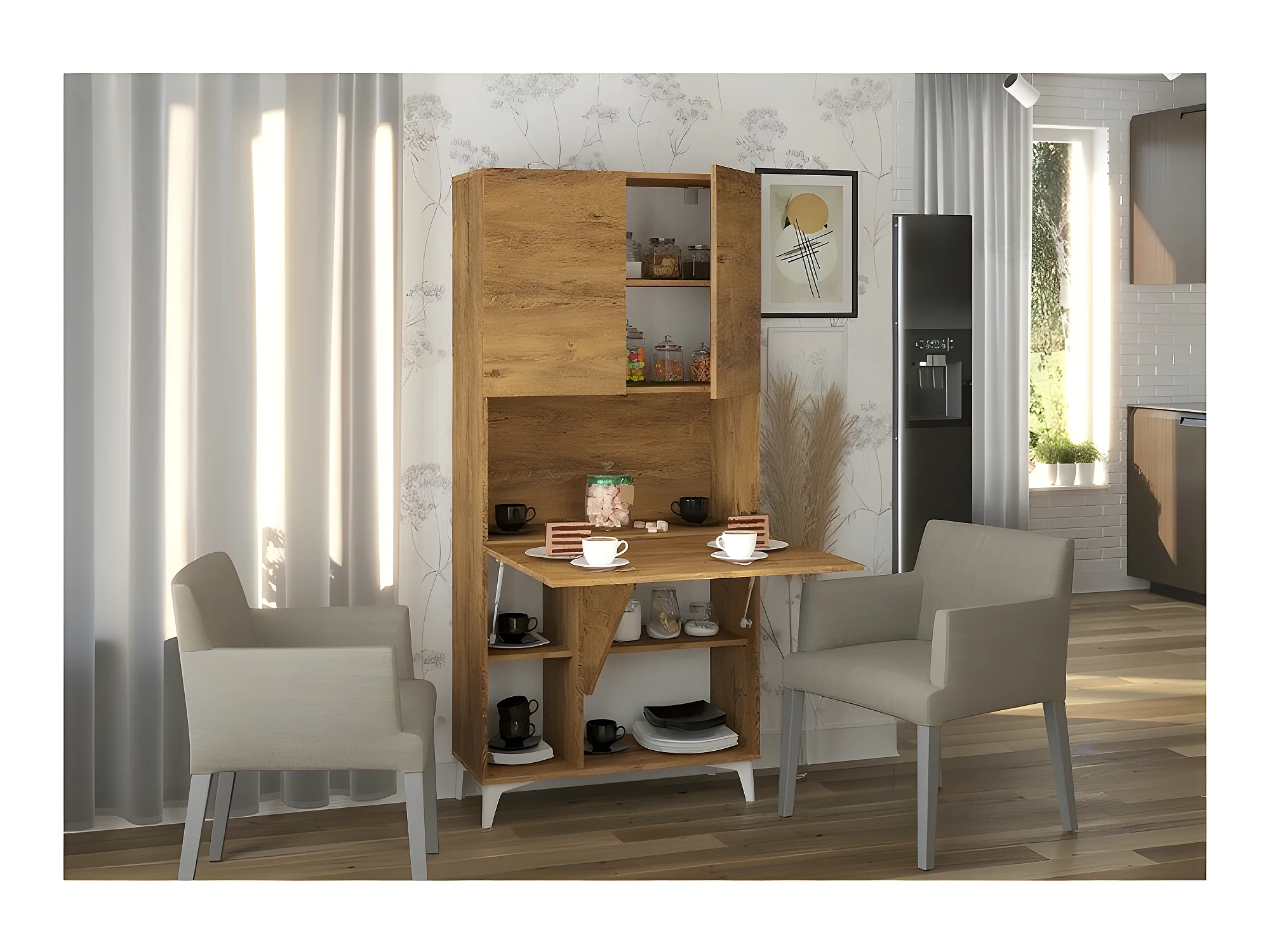 Armoire Placard Convertible en bureau et table Home office 175x80x36cm « Meggie-Chêne foncé»