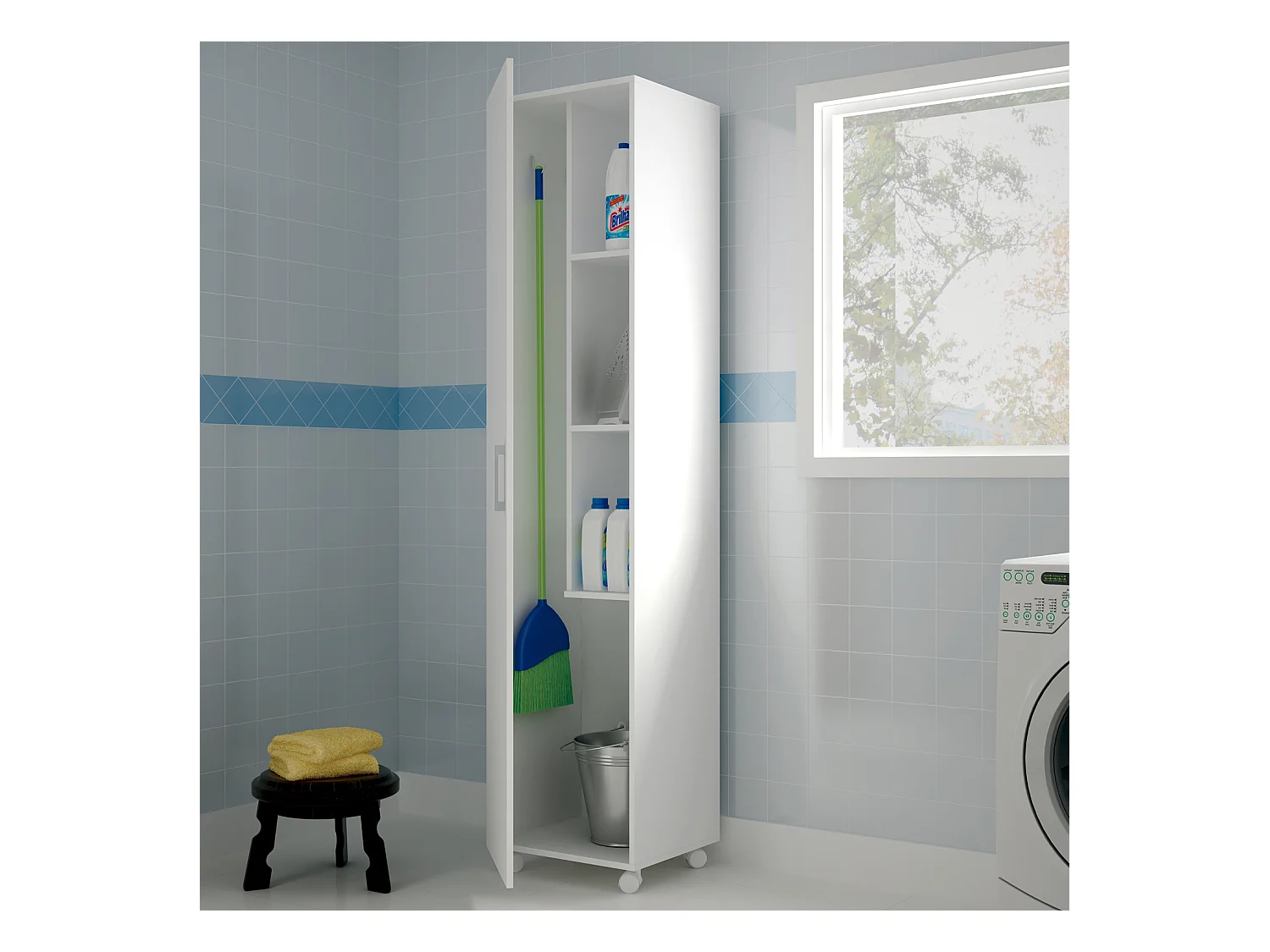 Armoire / placard de rangement avec 1 porte à roulettes coloris blanc - longueur 42 x profondeur 41 x hauteur 183 cm