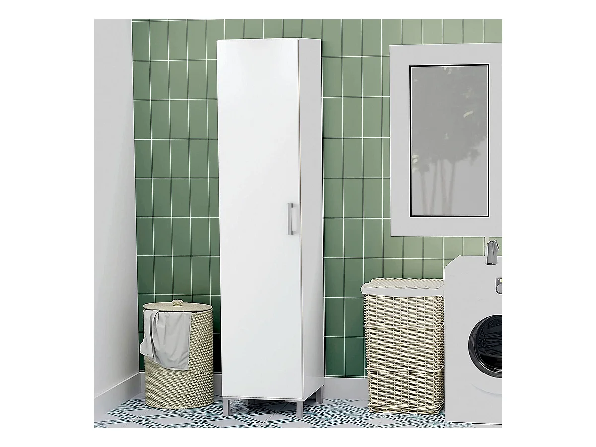 Armoire, placard de rangement avec 1 Porte coloris blanc - L. 42 x P. 41 x H. 187 cm