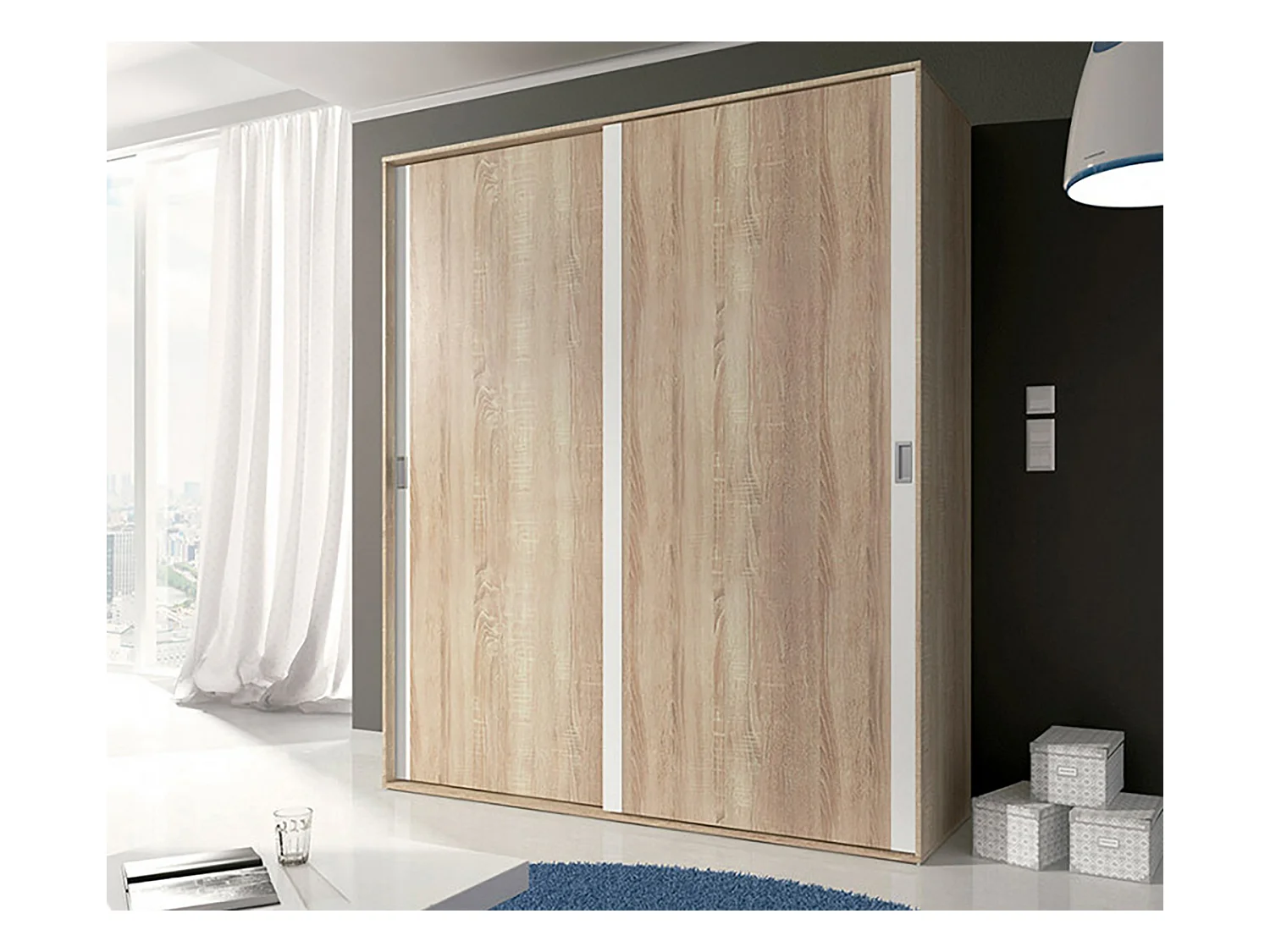 Armoire, placard garde-robe 2 portes coloris chêne cambrian, blanc - Longueur 180 x Profondeur 55 x Hauteur 208 cm