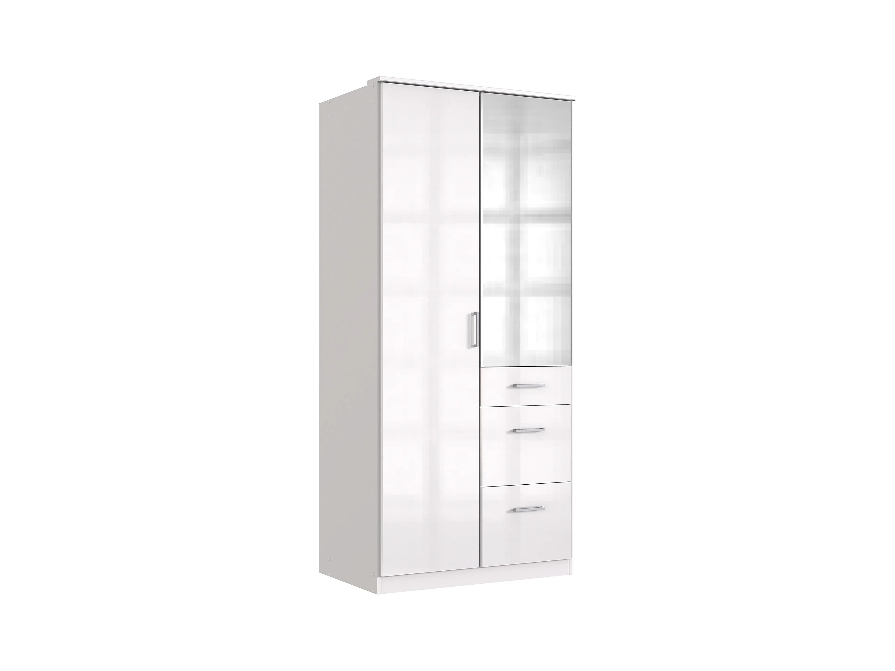 Armoire Placard, meuble de rangement avec miroir coloris blanc cassé, blanc