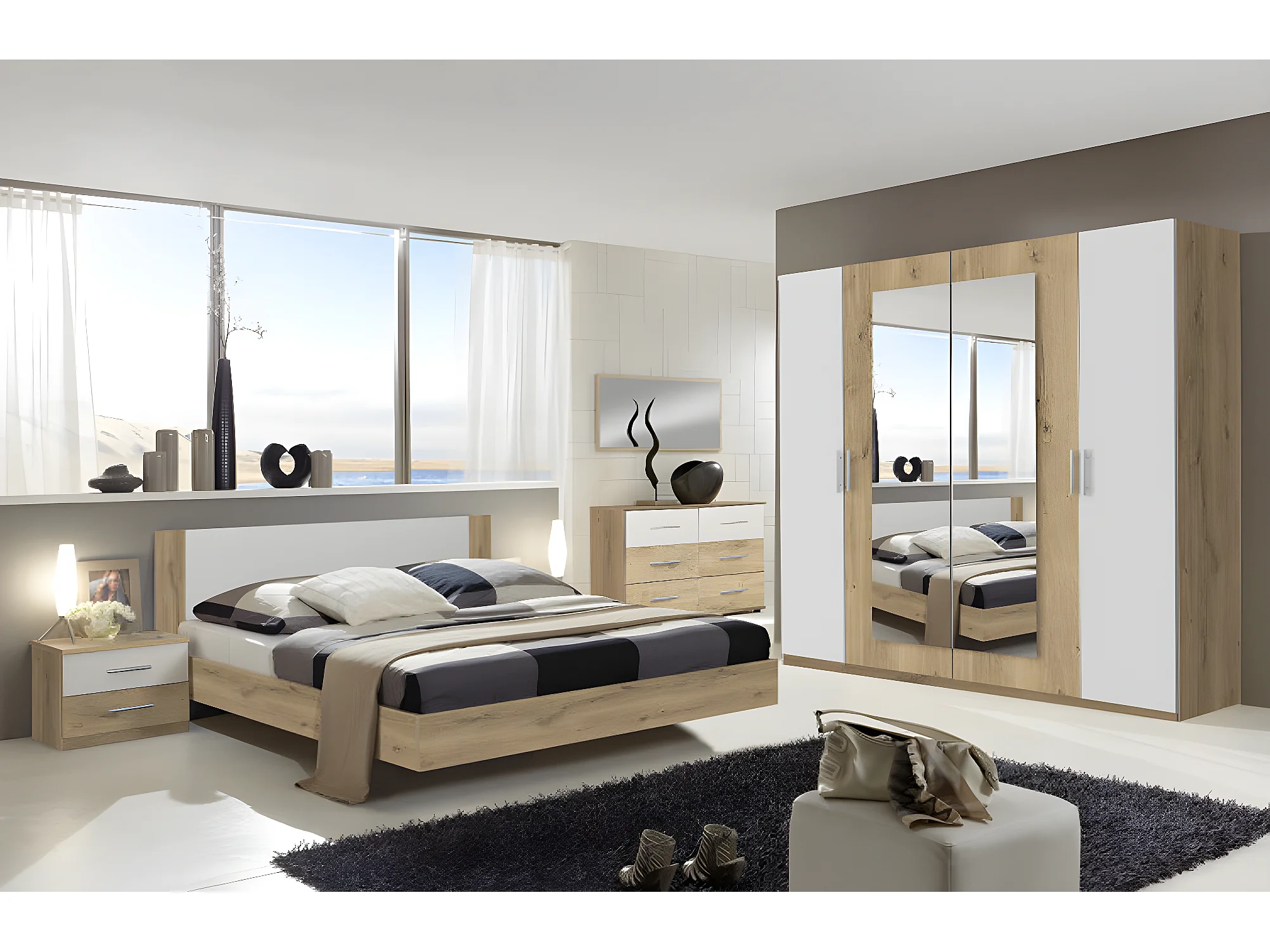 Armoire placard meuble de rangement coloris imitation chêne poutre/blanc