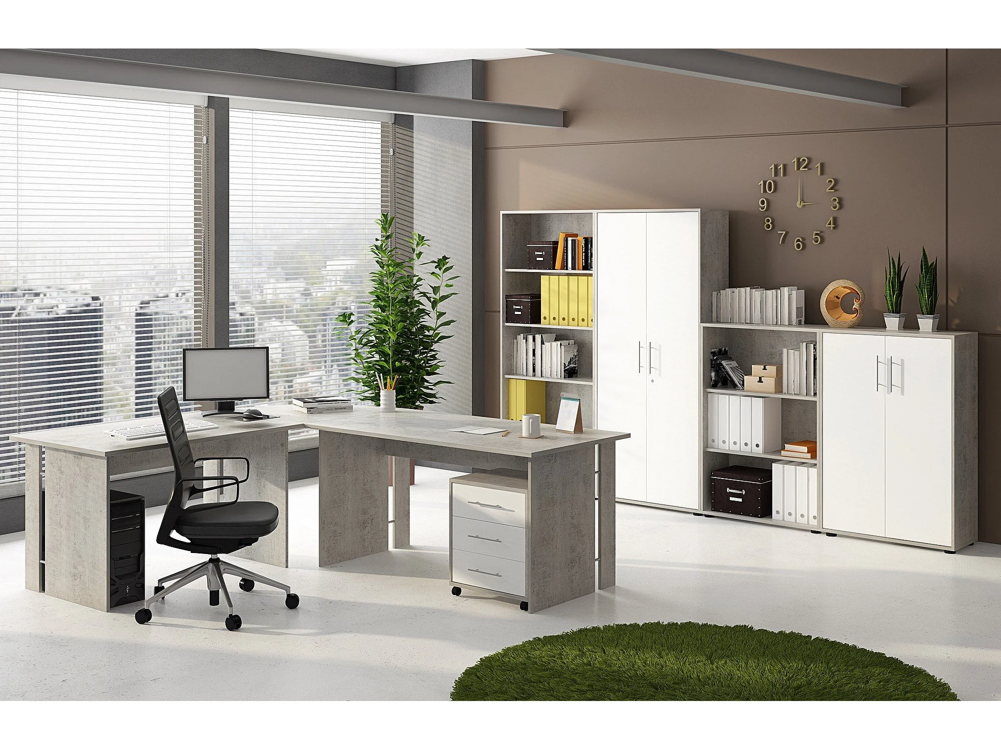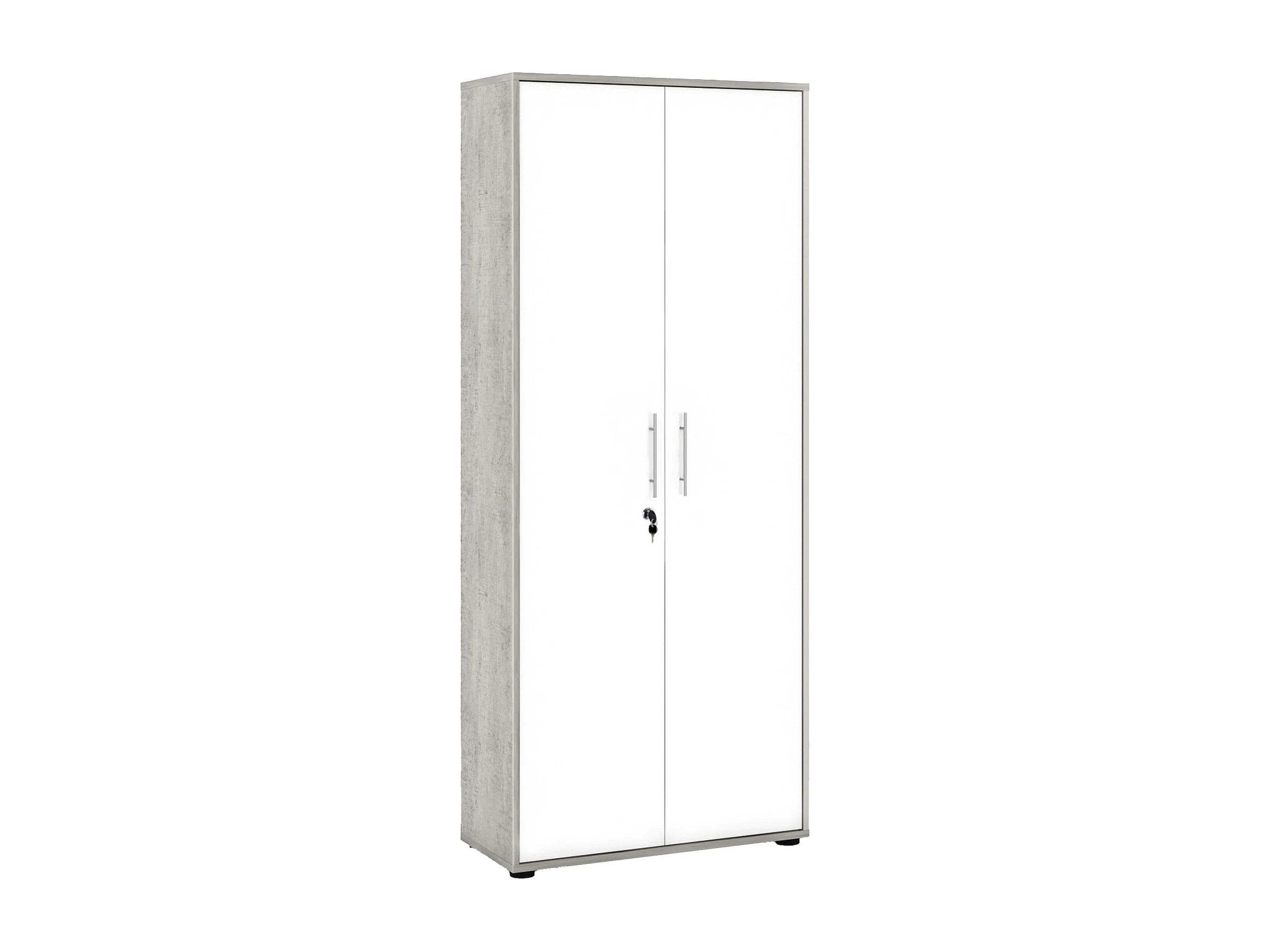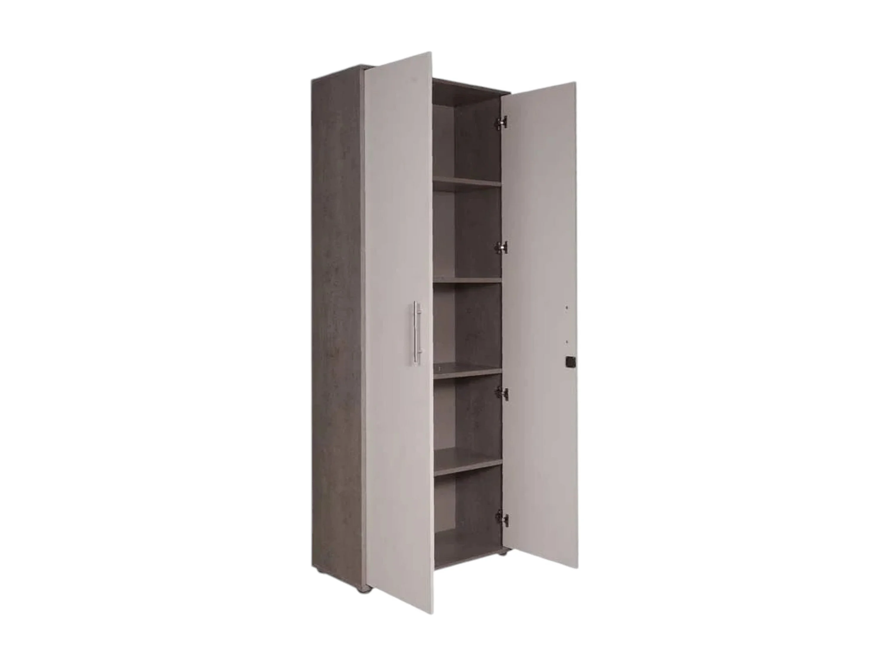 Armadio multiuso 2 ante Cambrils, Mobile ausiliario, Guardaroba portascarpe, Libreria multifunzione a 2 ante, 79x34h188 cm, Bianco e Cemento