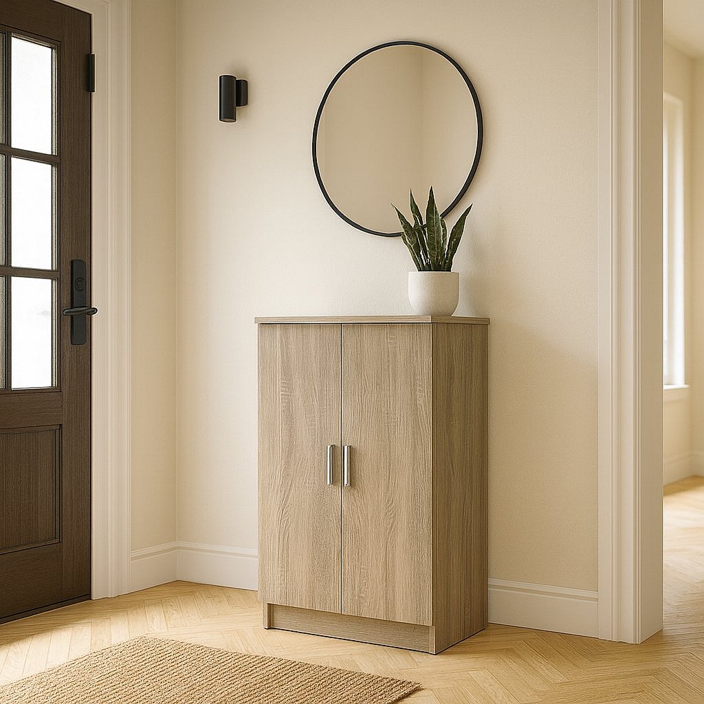 Armoire polyvalente à 2 portes Dfische, Meubles multifonctionnels, Casier à chaussures, Support à chaussures pour armoire, 55x35 h108 cm, Chêne clair