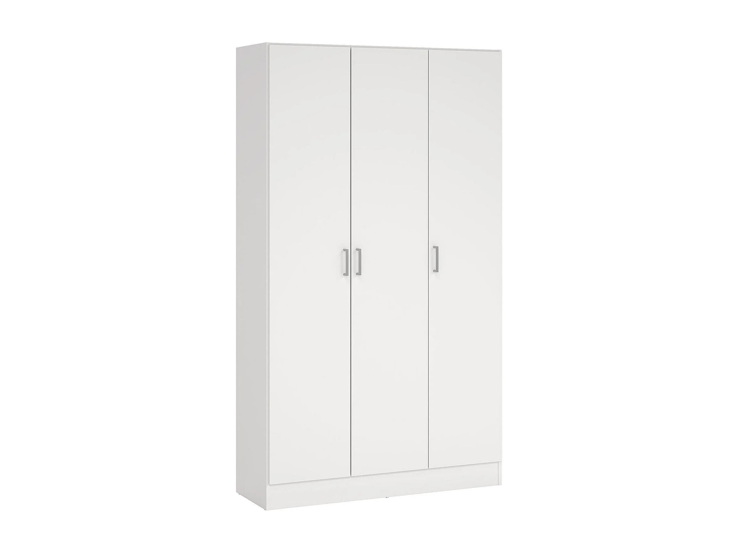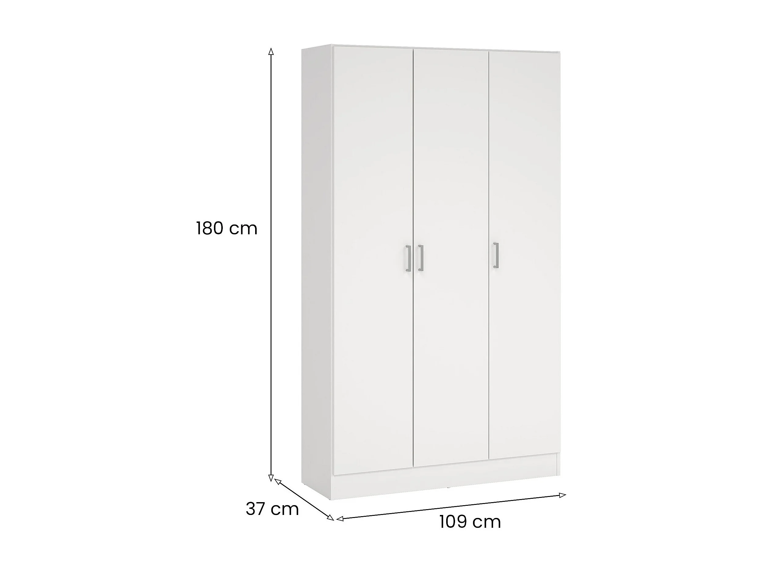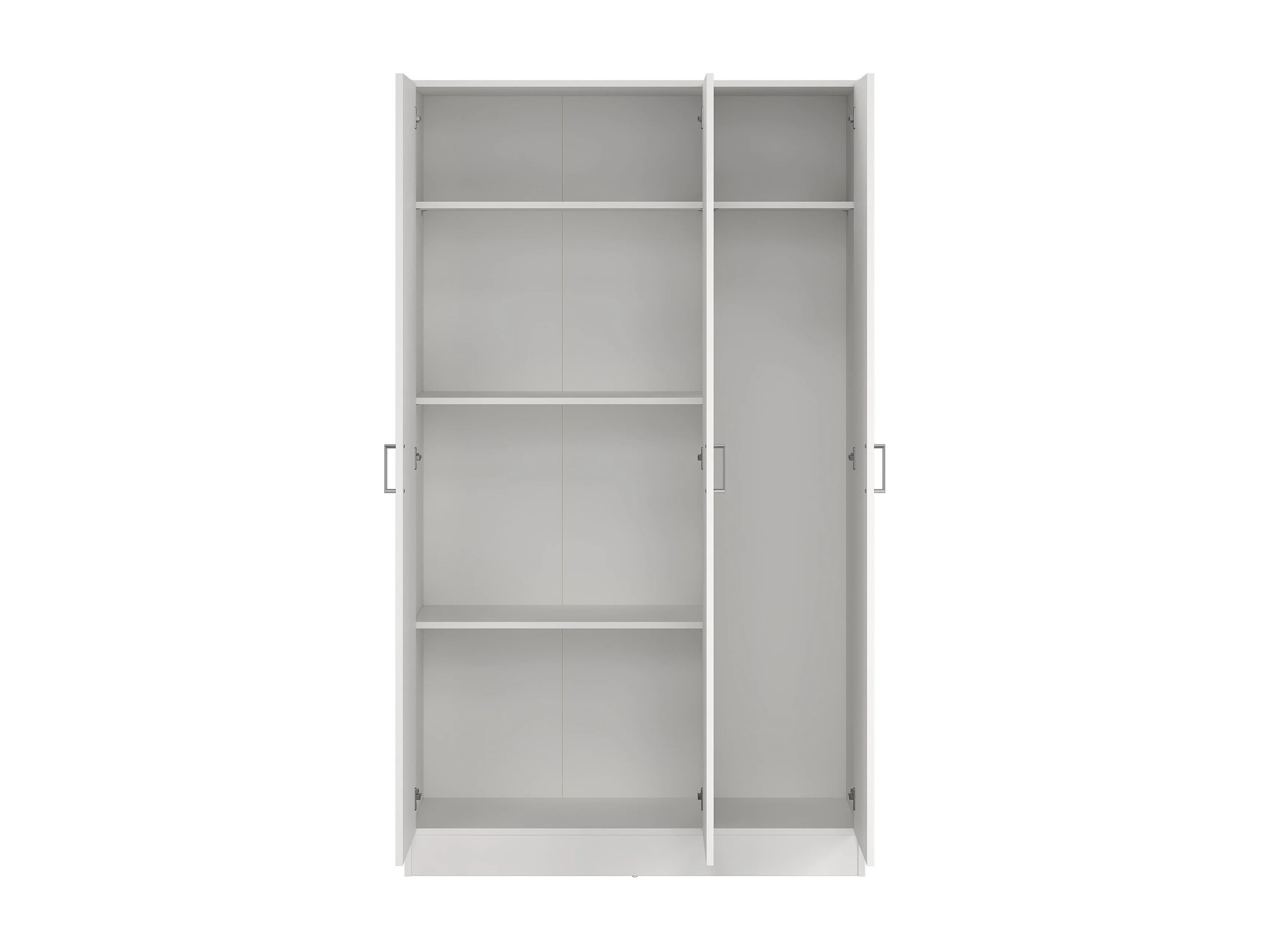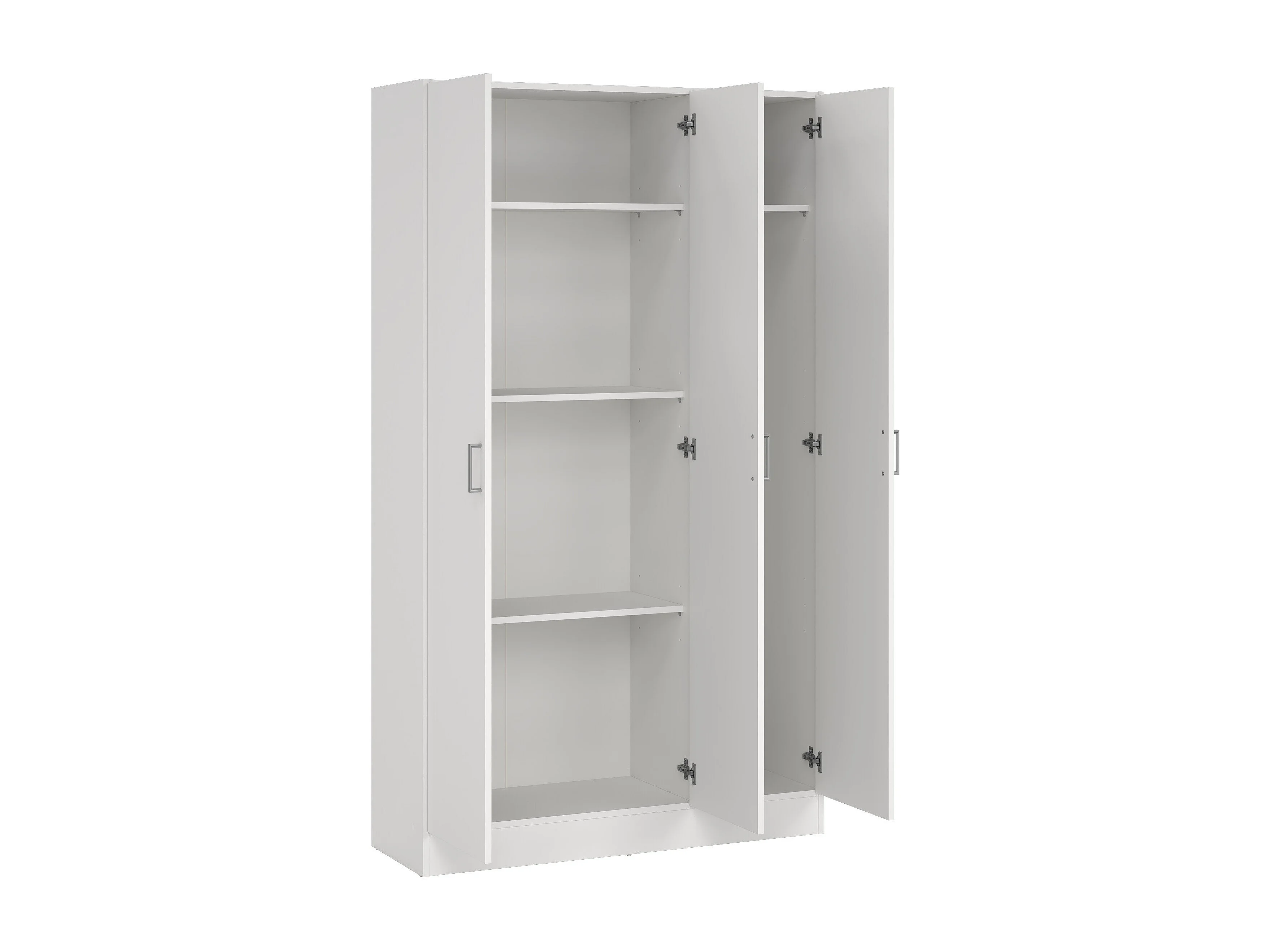Armoire polyvalente Beaumont, Armoire auxiliaire avec 3 portes, Étagère à chaussures avec étagères, Armoire à balais, 109x37h180 cm, Blanc