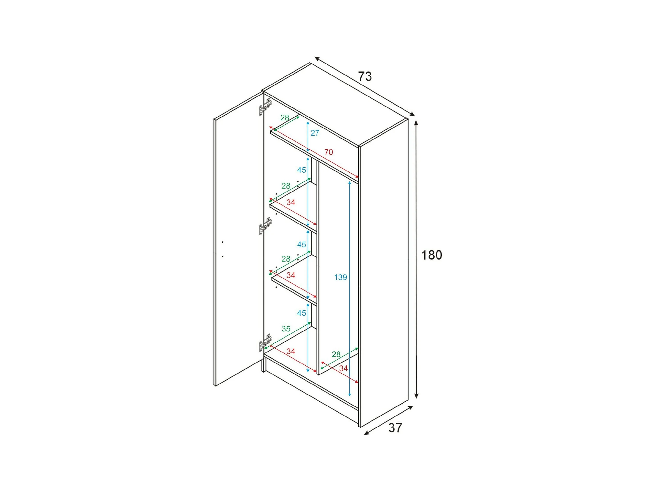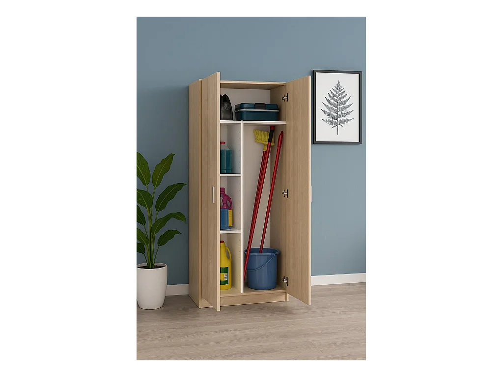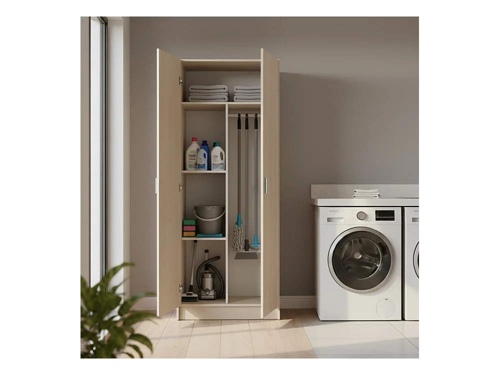 Armoire polyvalente Charleston, Armoire à balais avec 2 portes, Étagère à chaussures avec étagères, Armoire à balais, cm73x37h180 cm, Chêne