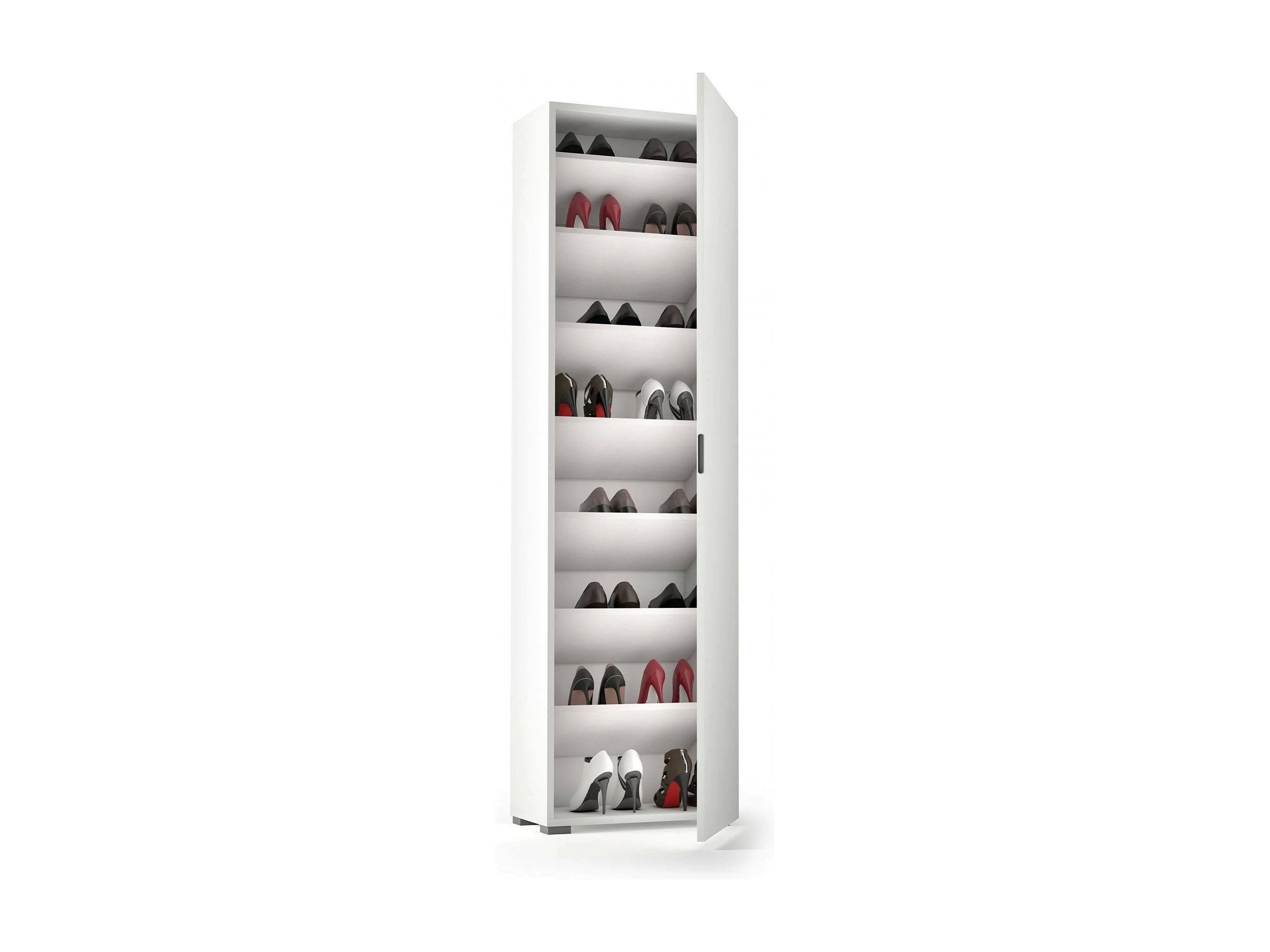 Ddarbo multifunctionele kledingkast, Lineaire kast met 1 deur en 7 planken, Kolom voor entree of badkamer, Modern schoenenrek, 100% Made in Italy, 50x30h182 cm, Wit