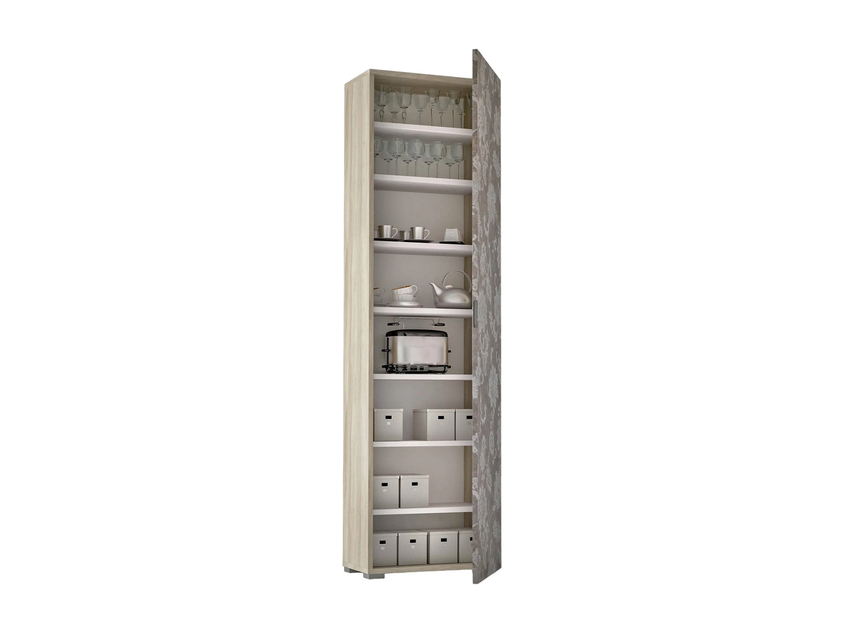 Armario multiusos Ddarbo, Mueble lineal con 1 puerta y 7 baldas, Columna de entrada o baño, zapatero moderno, 100% Made in Italy, 50x30h182 cm, Olmo y fantasía