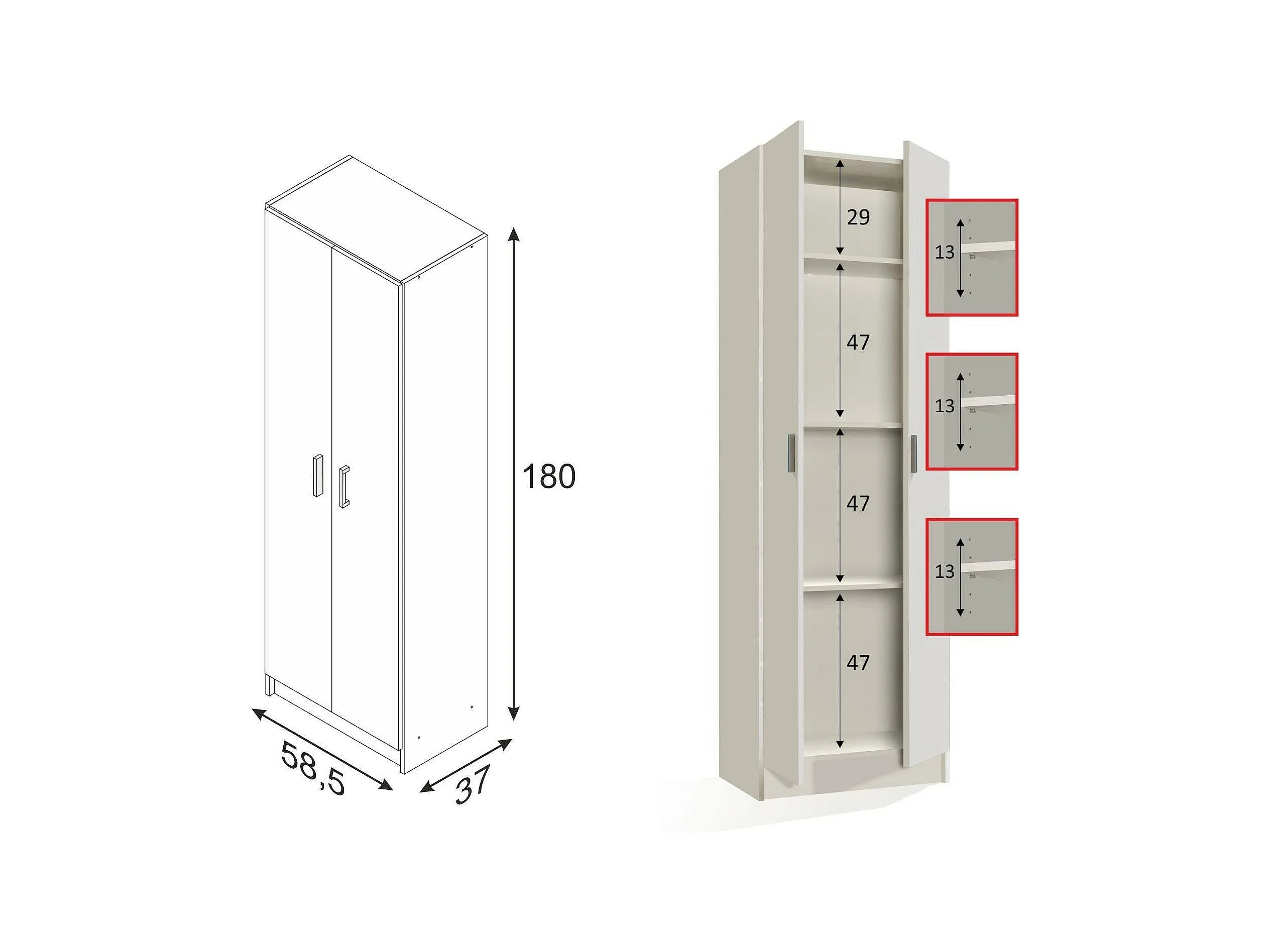 Armoire polyvalente Salem, Armoire auxiliaire avec 2 portes, Étagère à chaussures avec 3 étagères, Étagère à chaussures haute moderne, 59x37h180 cm, Chêne