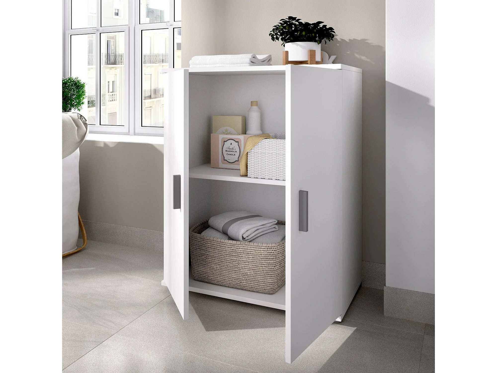 Armoire polyvalente Dhot, Armoire auxiliaire basse avec 2 portes, Étagère à chaussures avec 1 étagère, Armoire multifonctionnelle, 59x37h80 cm, Blanc