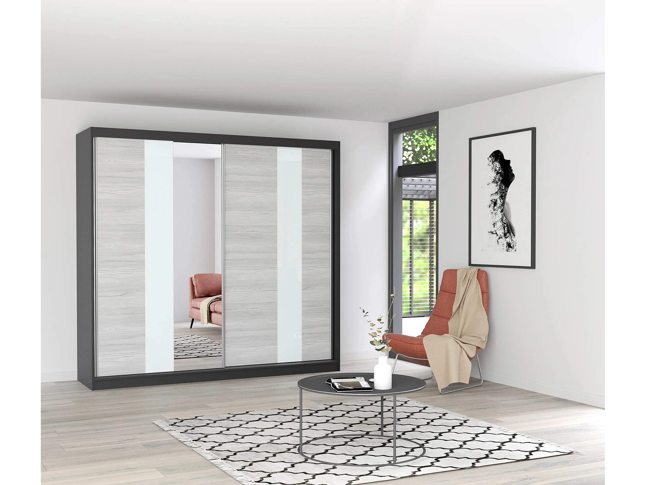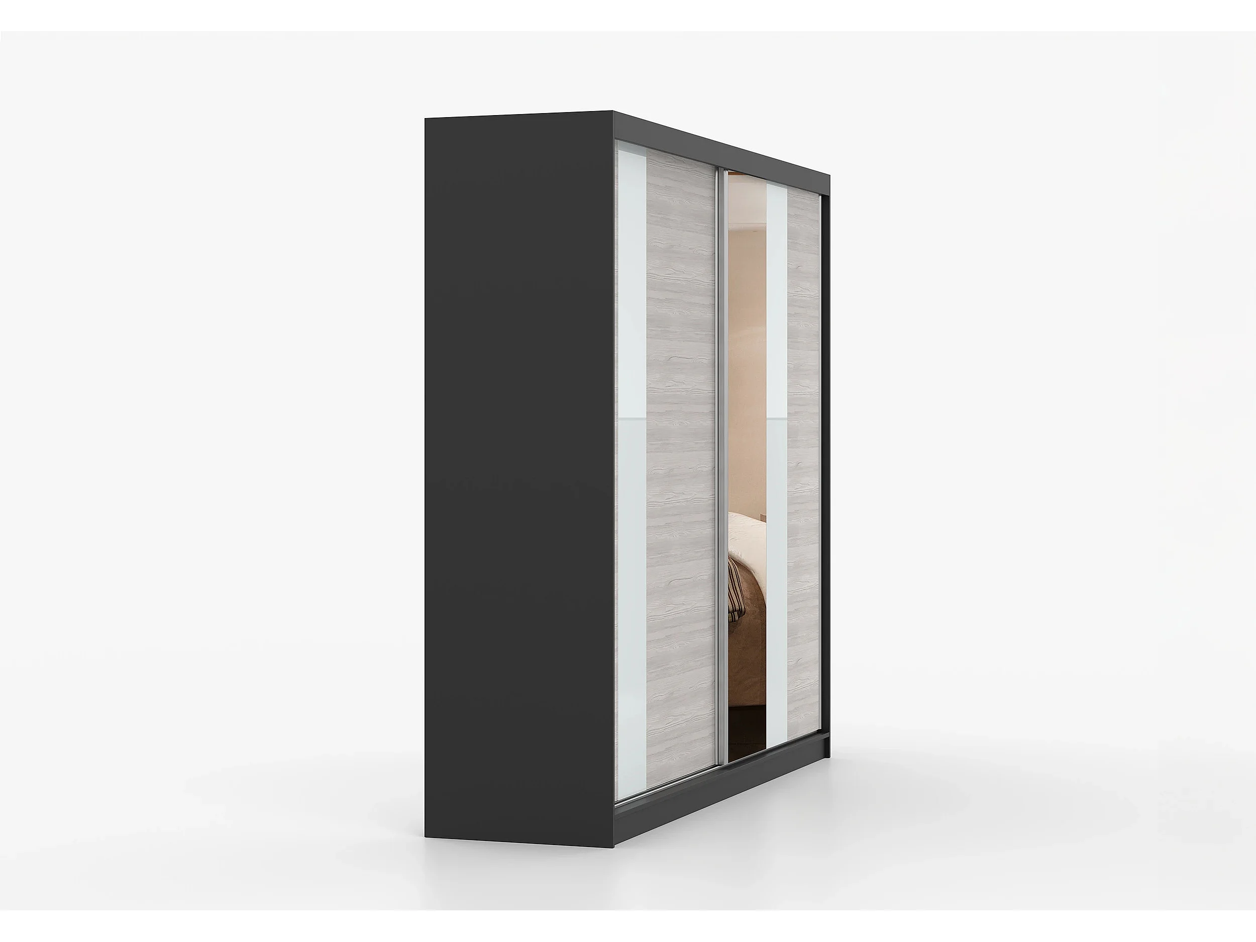 Armoire Rhéa 233 cm avec miroir - Noir - Kathult