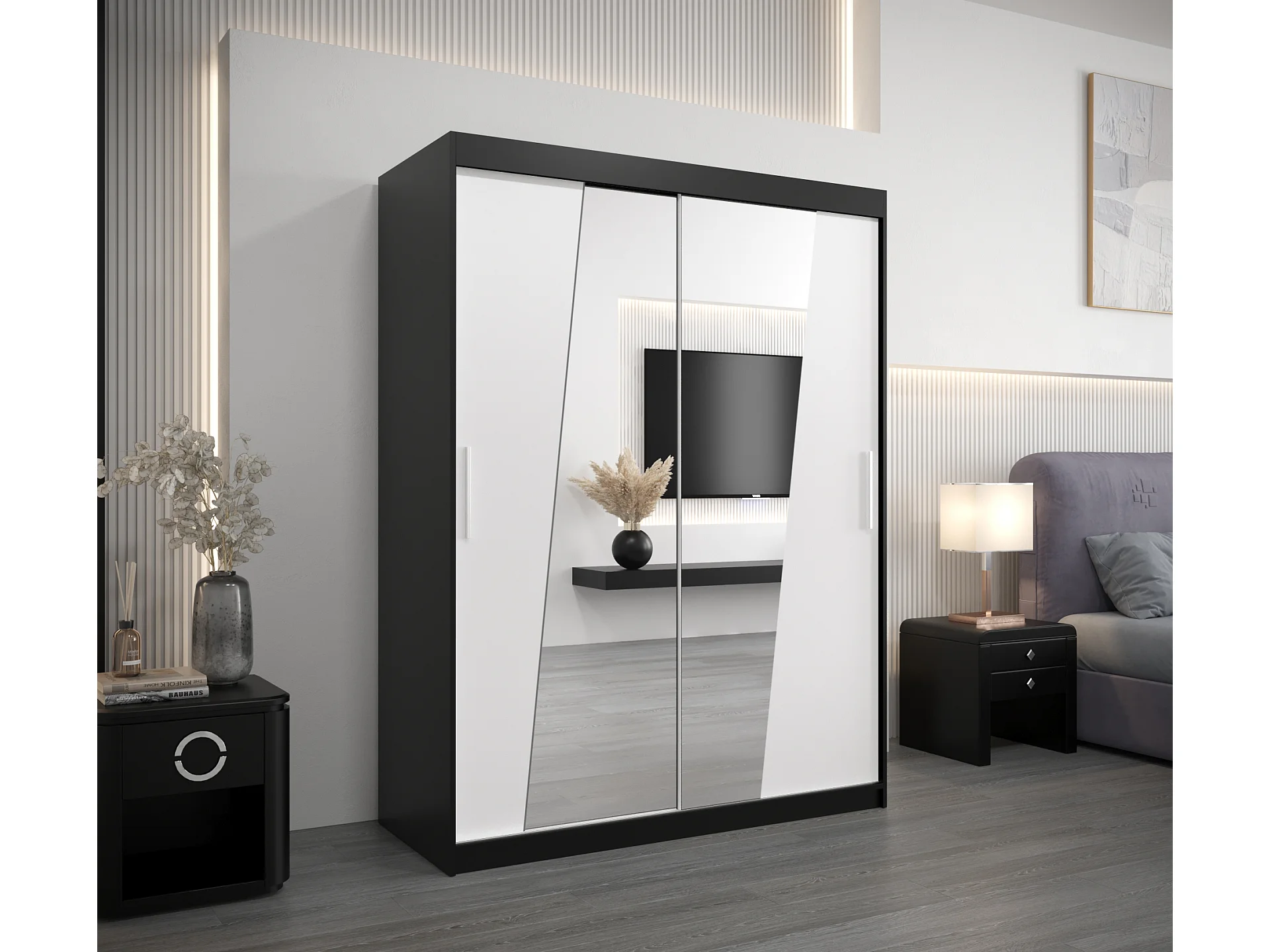 Armoire Rhomb À Portes Coulissantes 200/150/62 2 portes (Noir/Blanc)