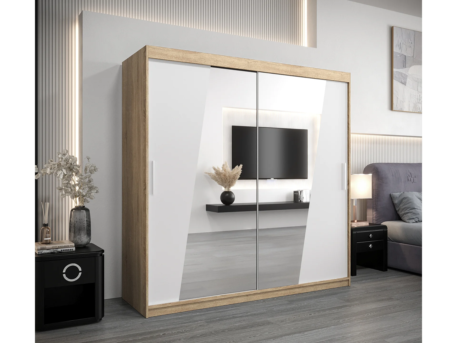 Armoire Rhomb À Portes Coulissantes 200/200/62 2 portes (Sonoma/Blanc)