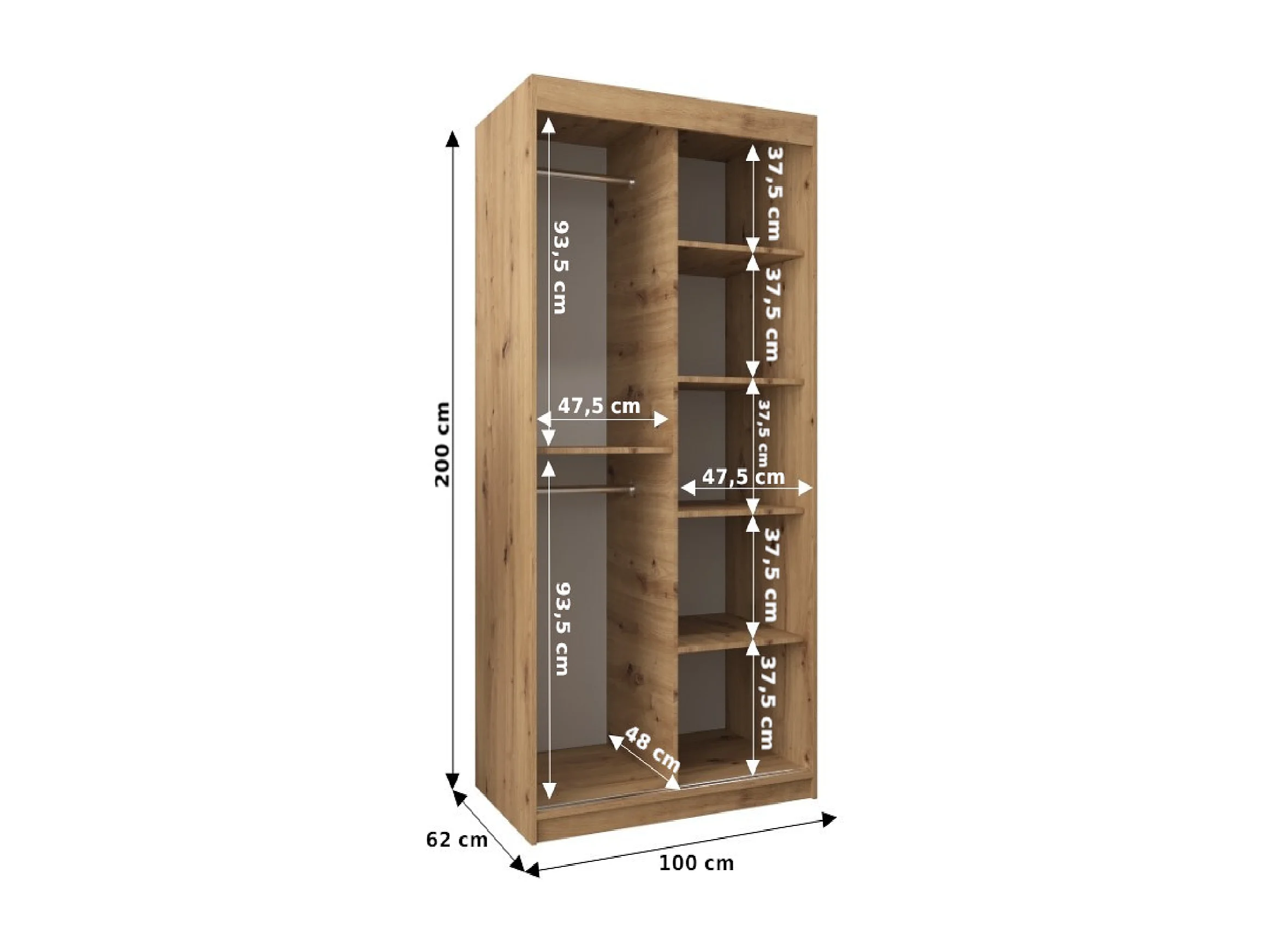 Armoire Roma 2 À Portes Coulissantes 200/100/62 2 portes (Artisan/Noir)
