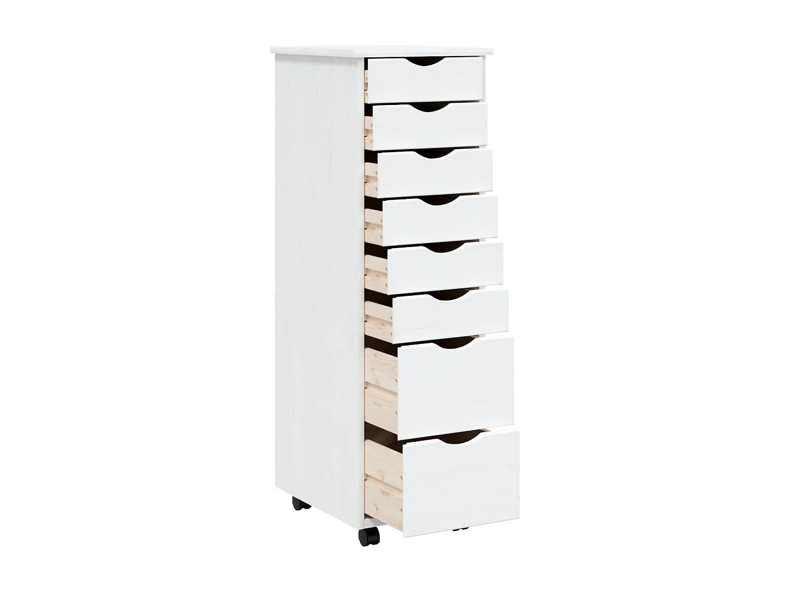 Armoire roulante avec tiroirs MOSS blanc bois de pin solide