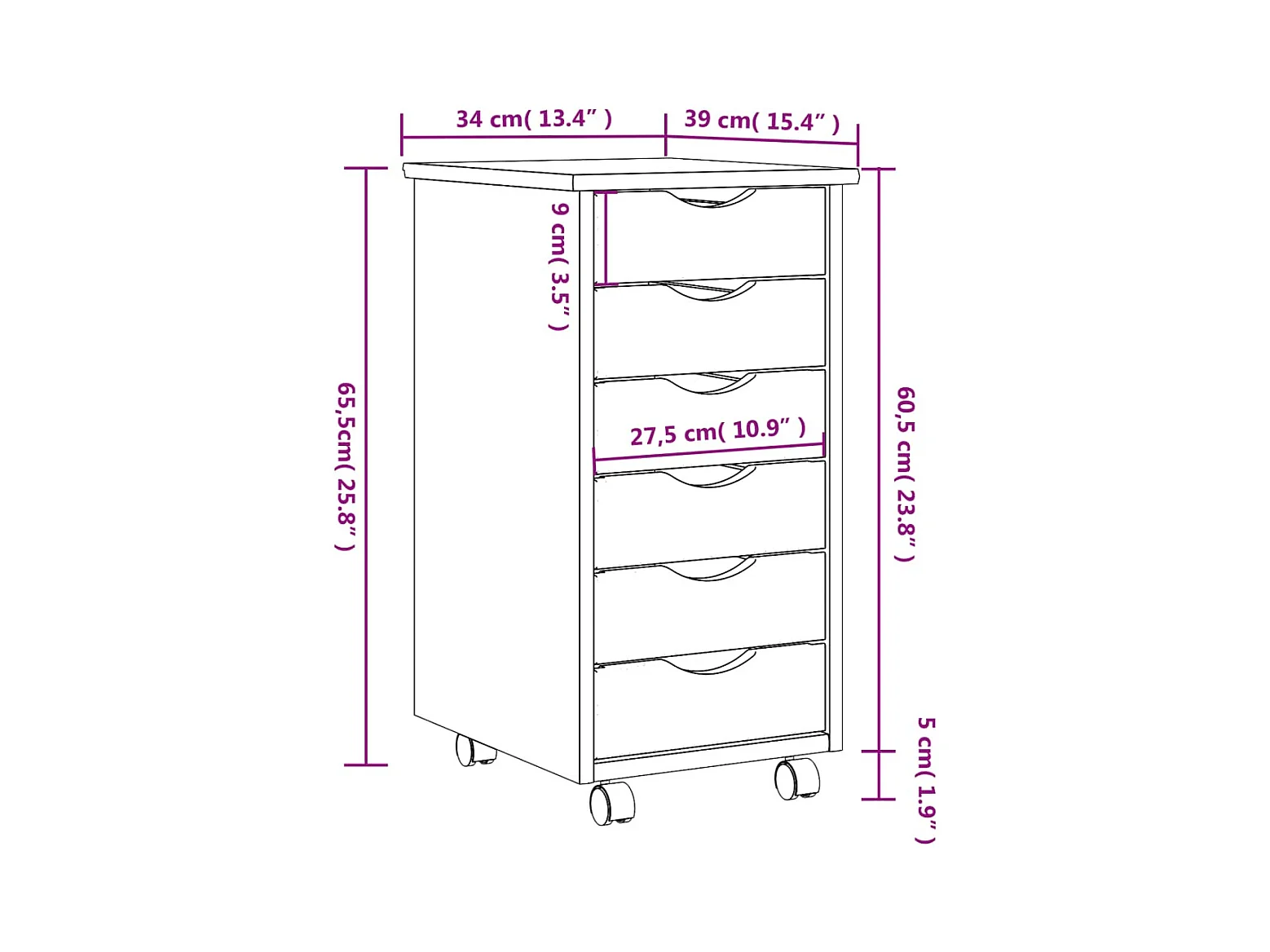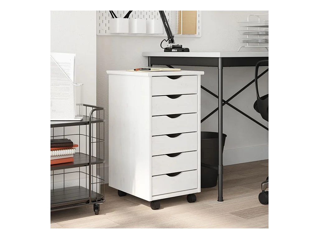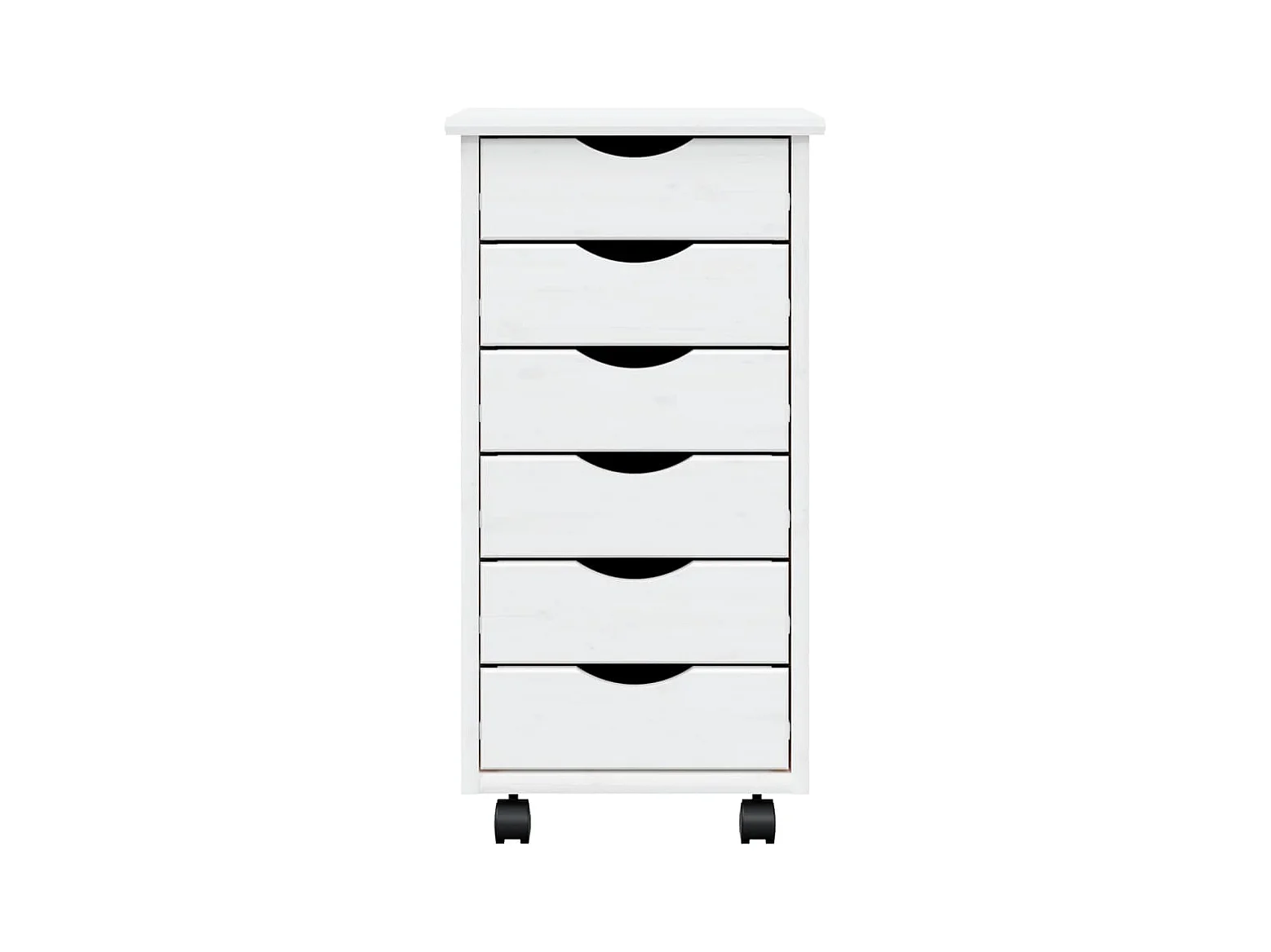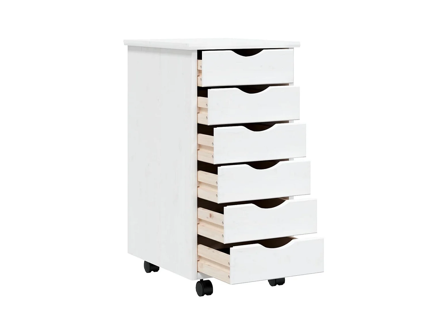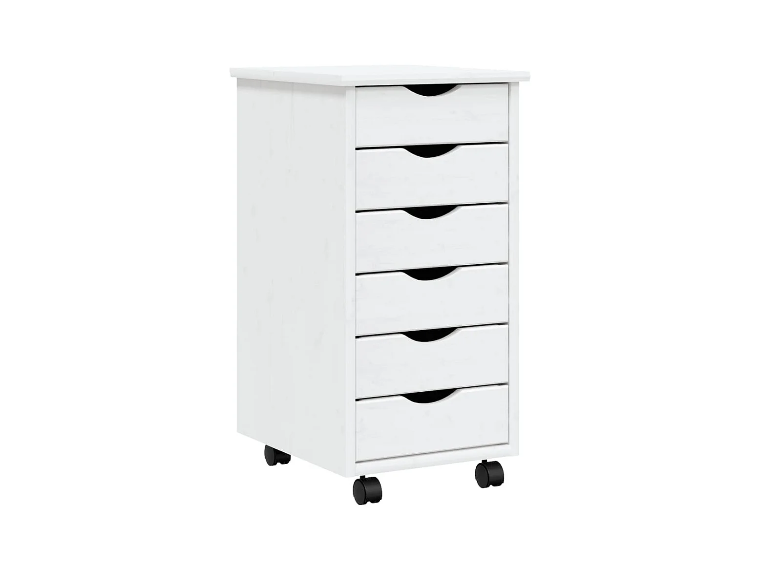 Armoire roulante avec tiroirs MOSS blanc bois de pin solide