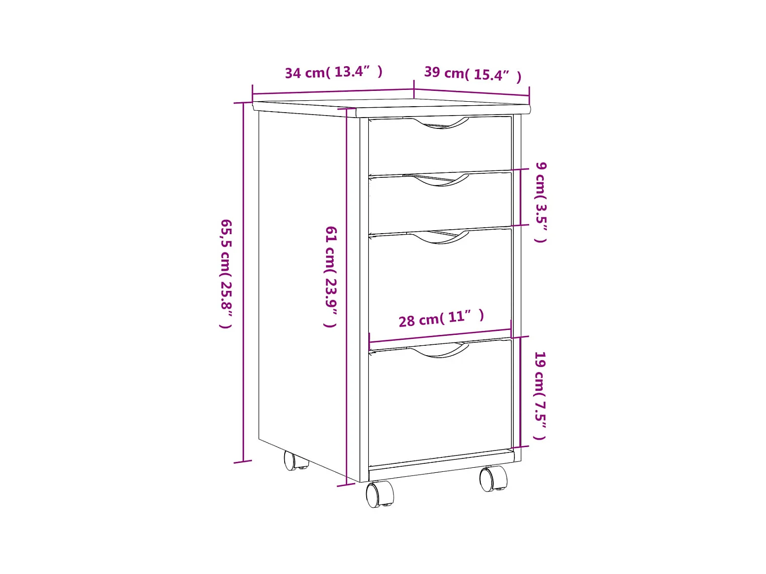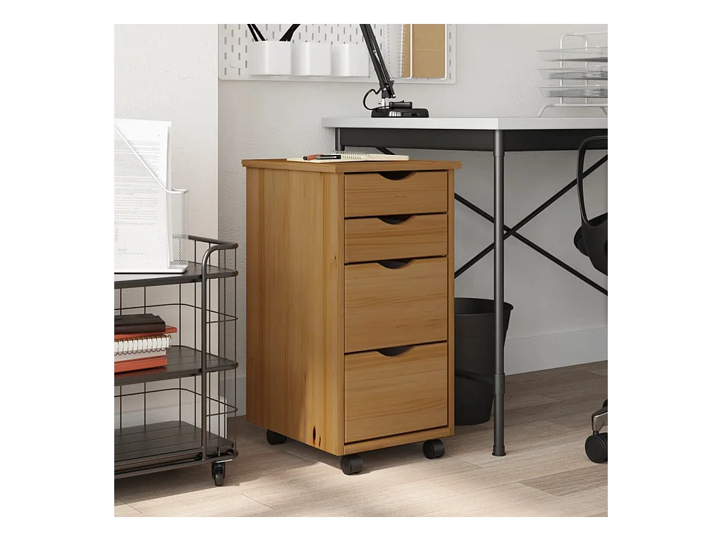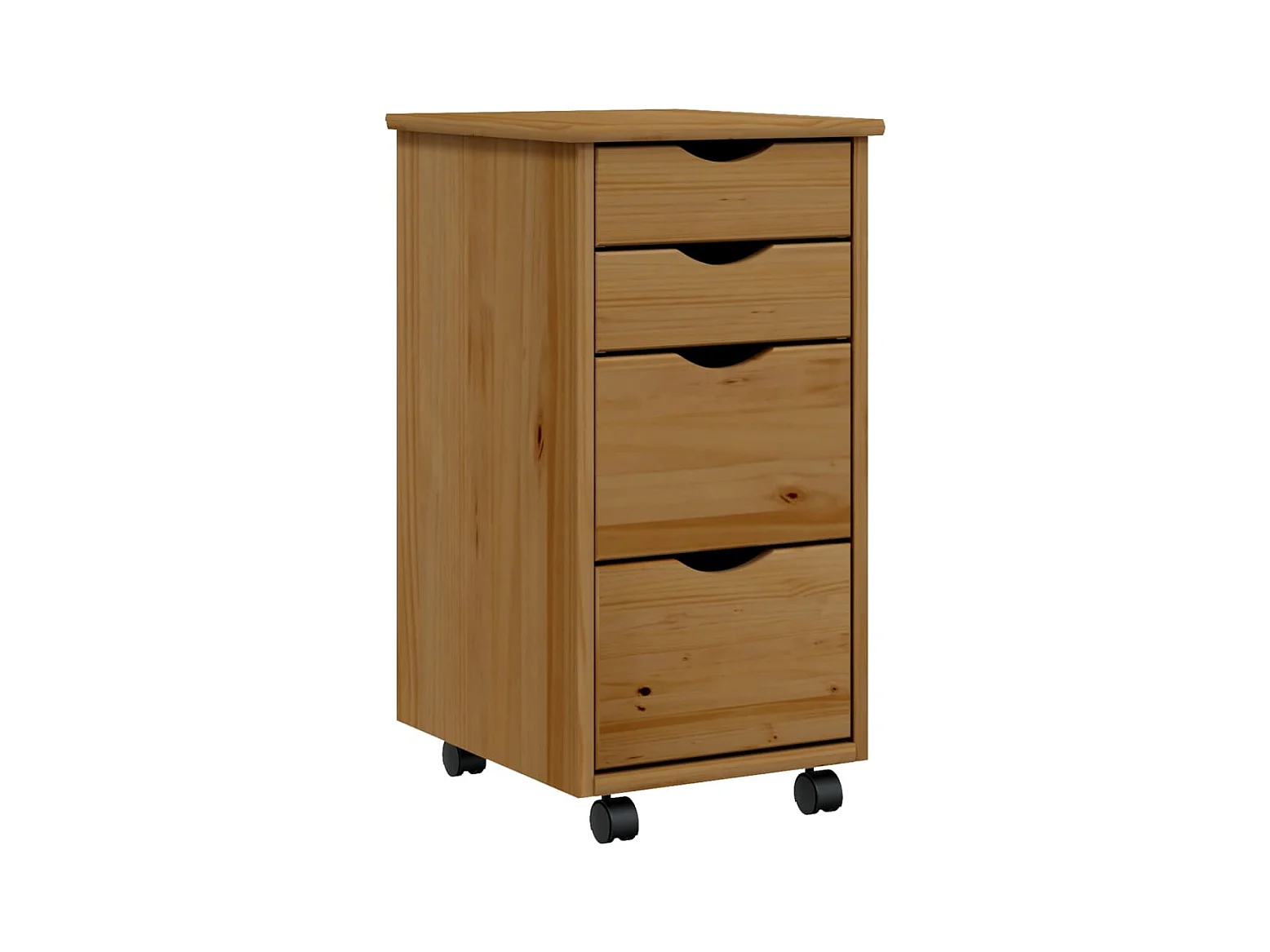 Armoire roulante avec tiroirs MOSS bois de pin marron miel