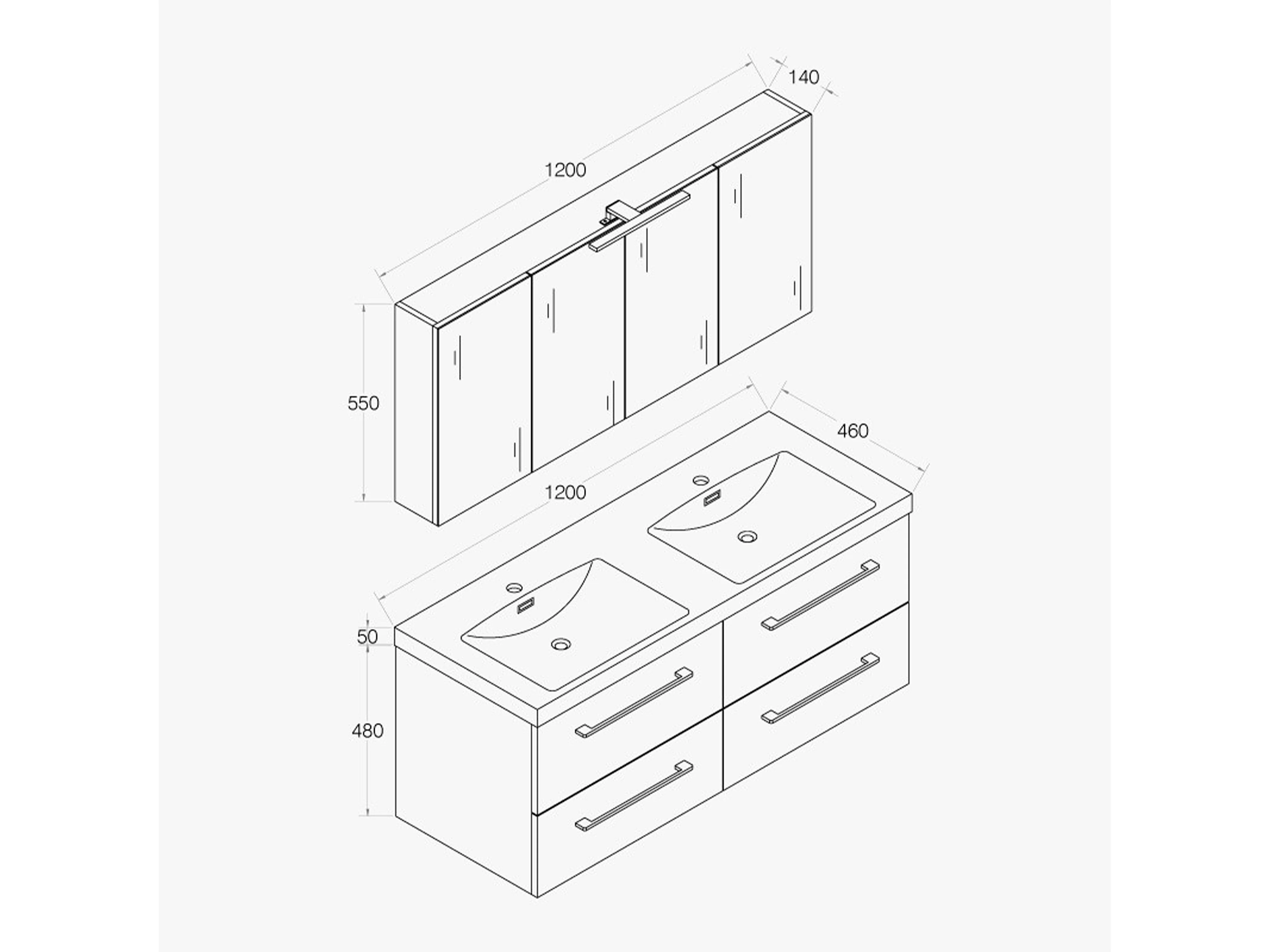 Armoire de toilette avec miroir 120 cm chêne californien naturel Aquazur