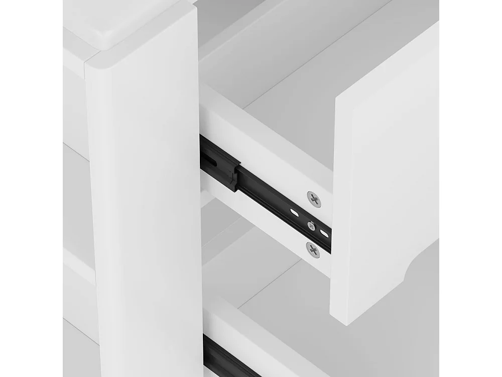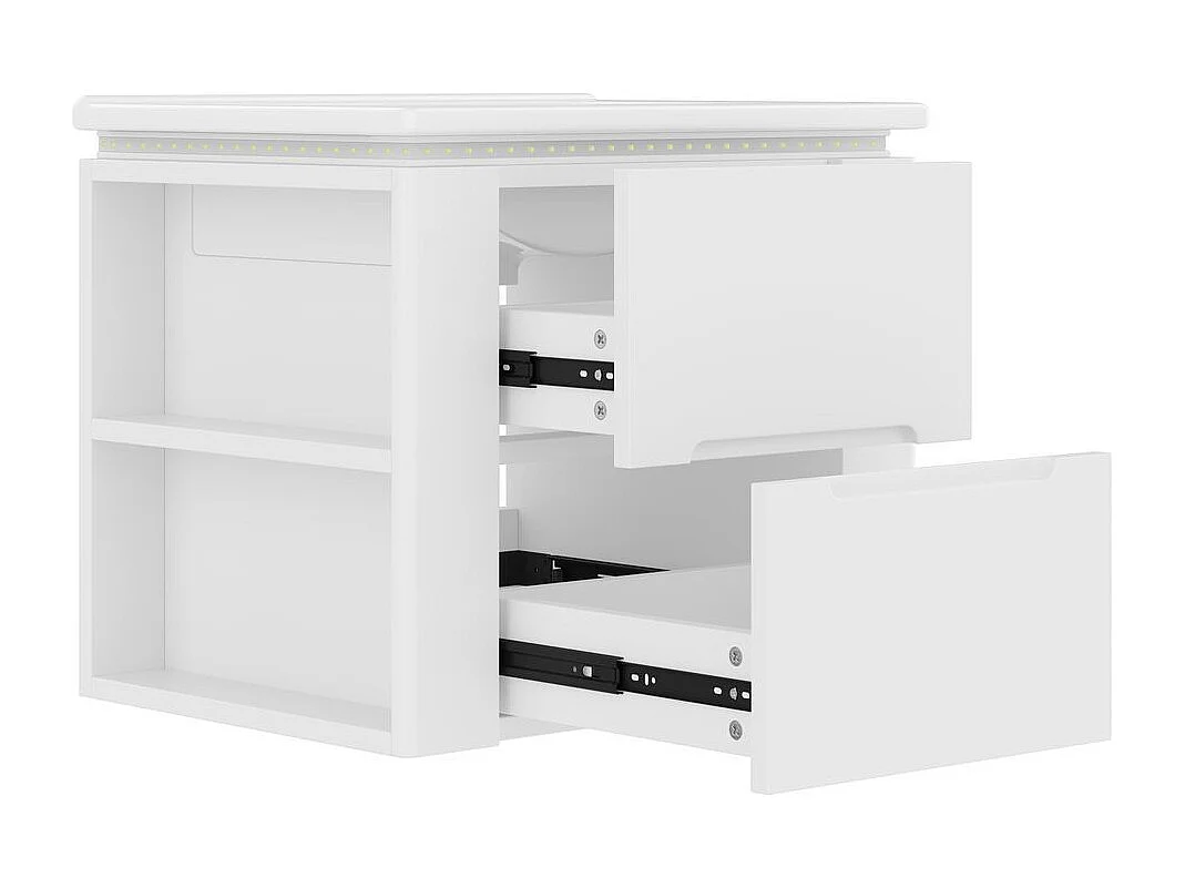Armoire salle de bain suspendue laquee eclairage LED detection radar deux tiroirs silencieux deux tablettes laterales lavabo integre blanc