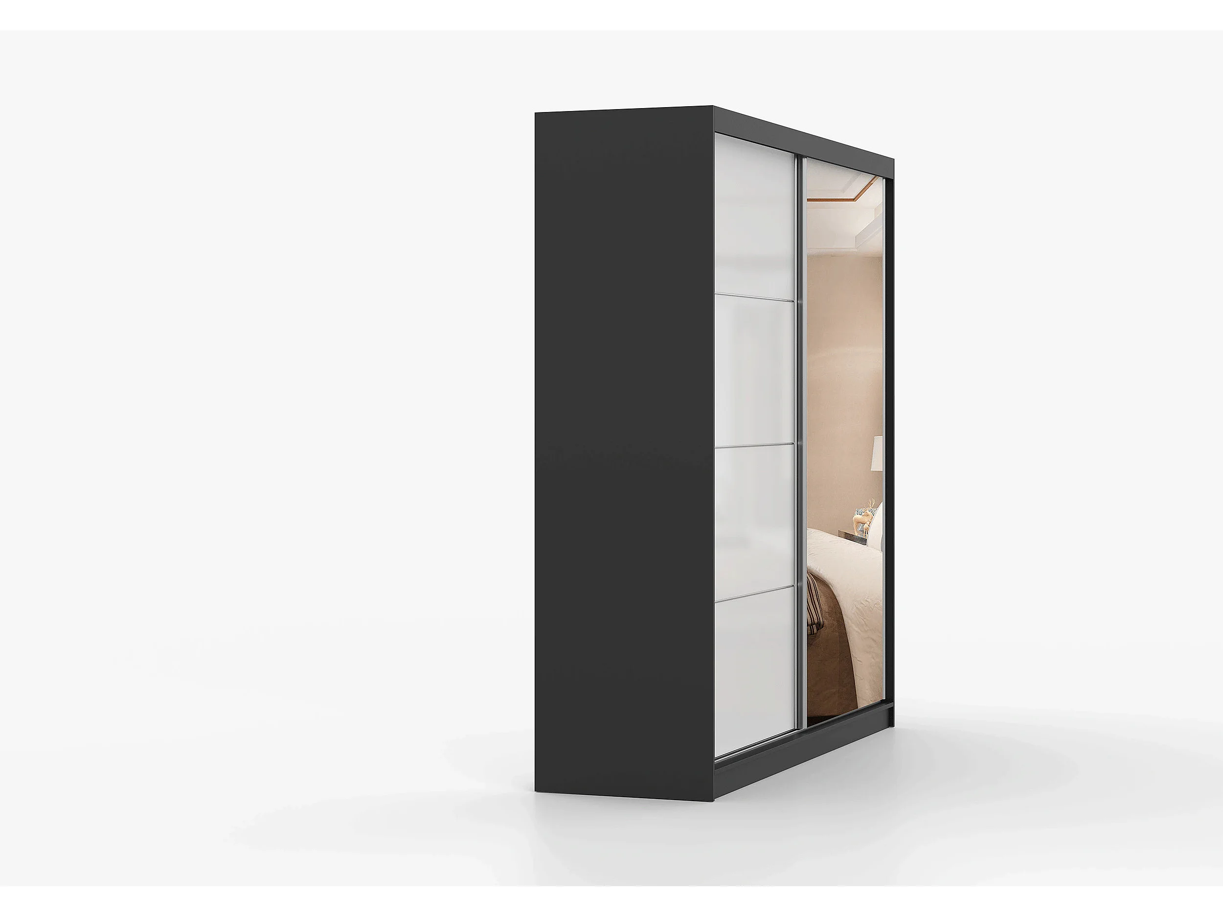 Armoire Séphira 203 cm avec miroir - Noir - Blanc
