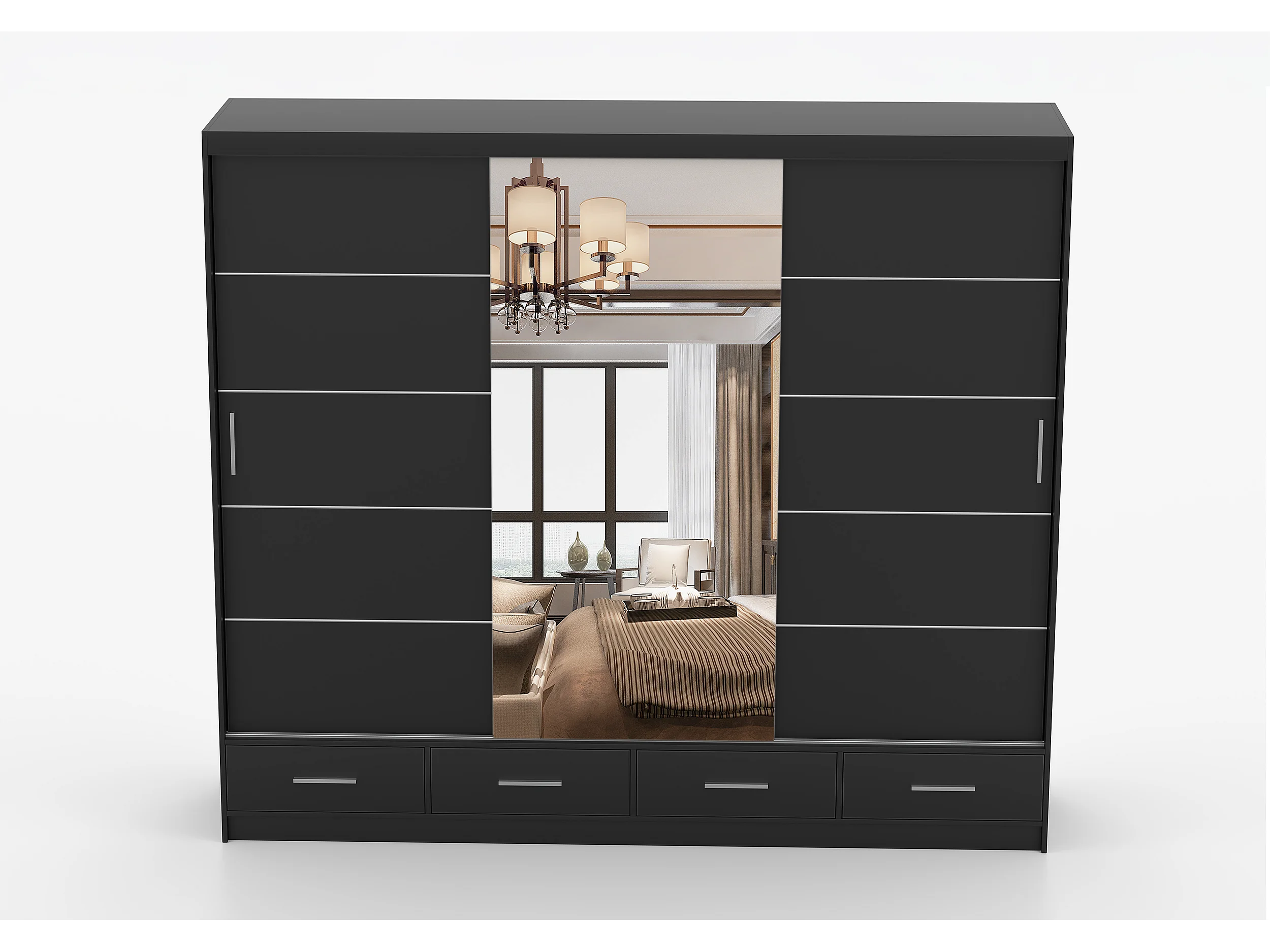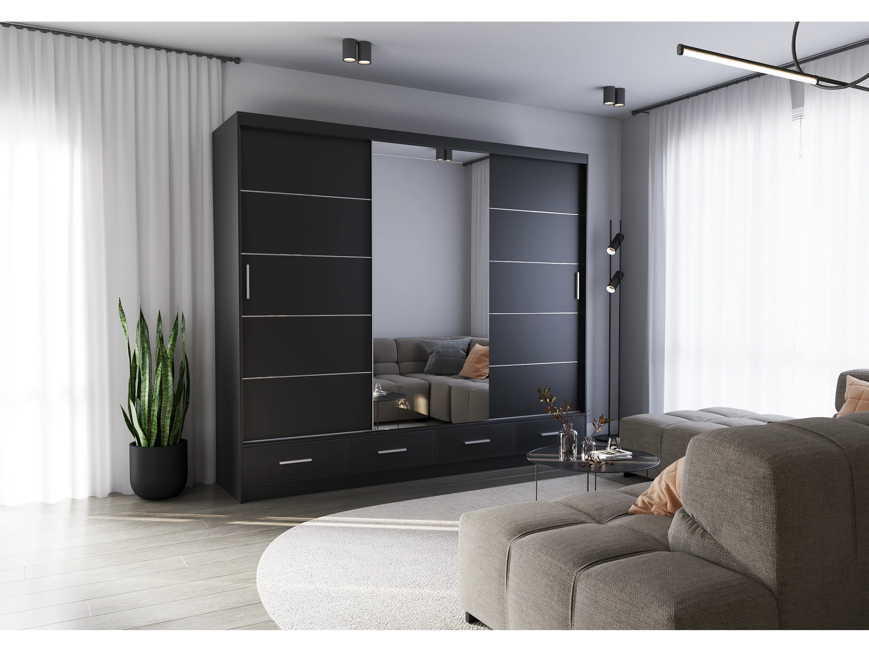 Armoire Silas 250 cm avec miroir - Noir