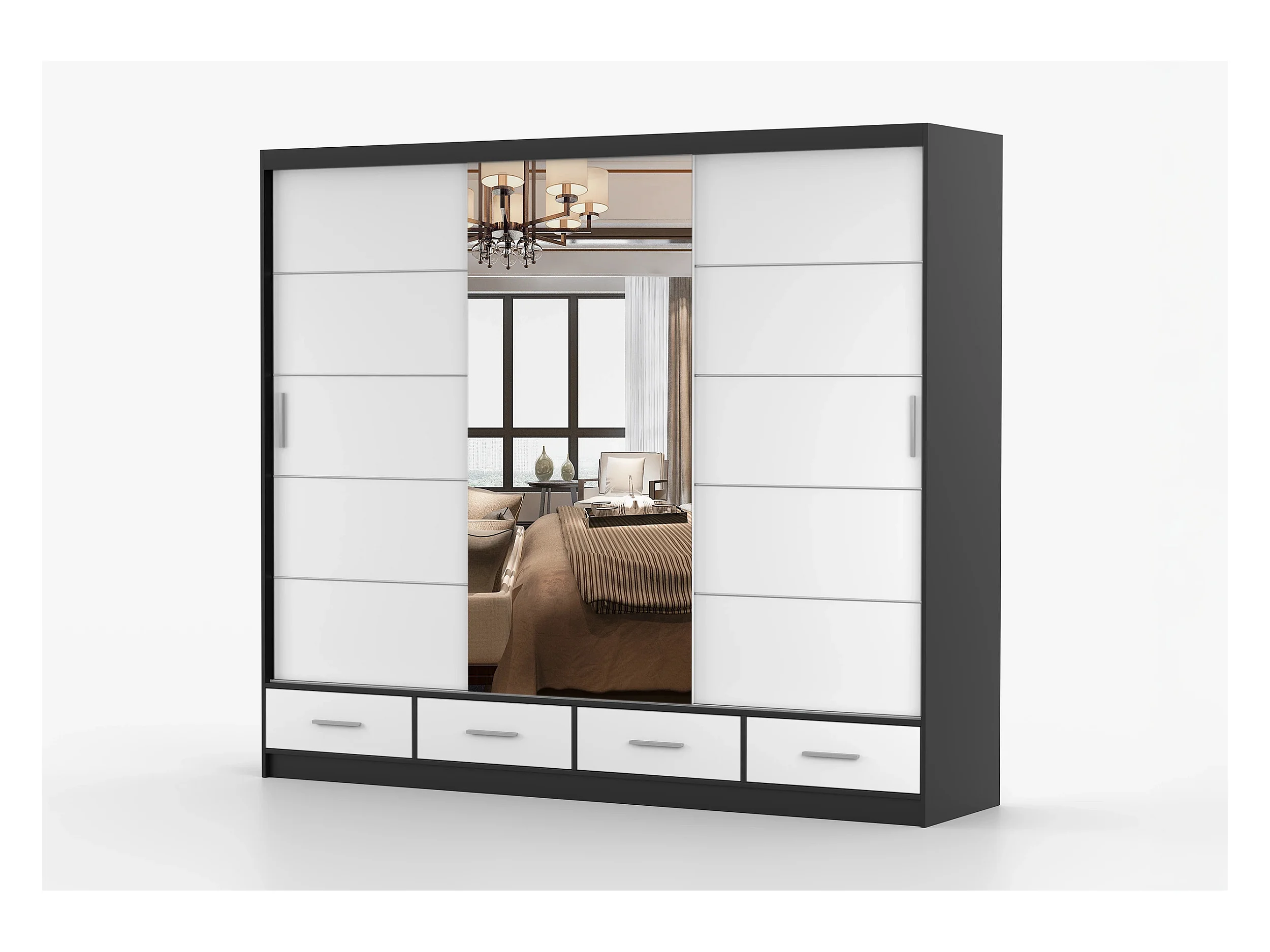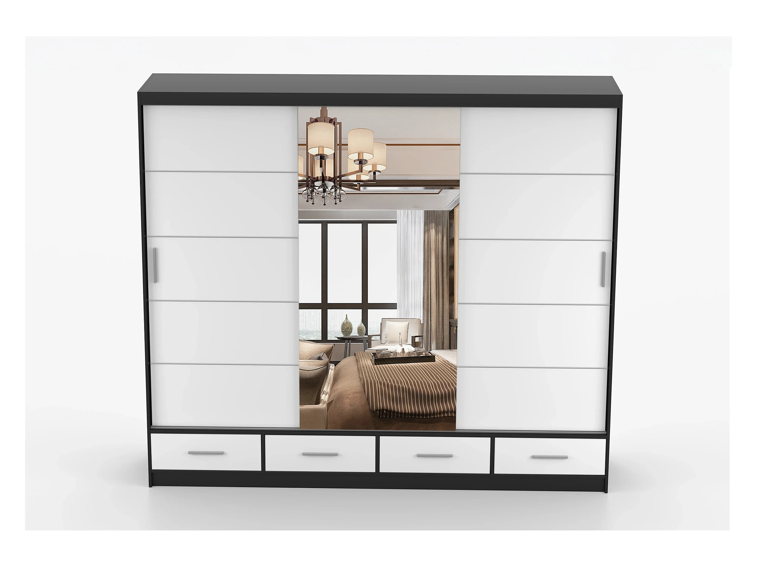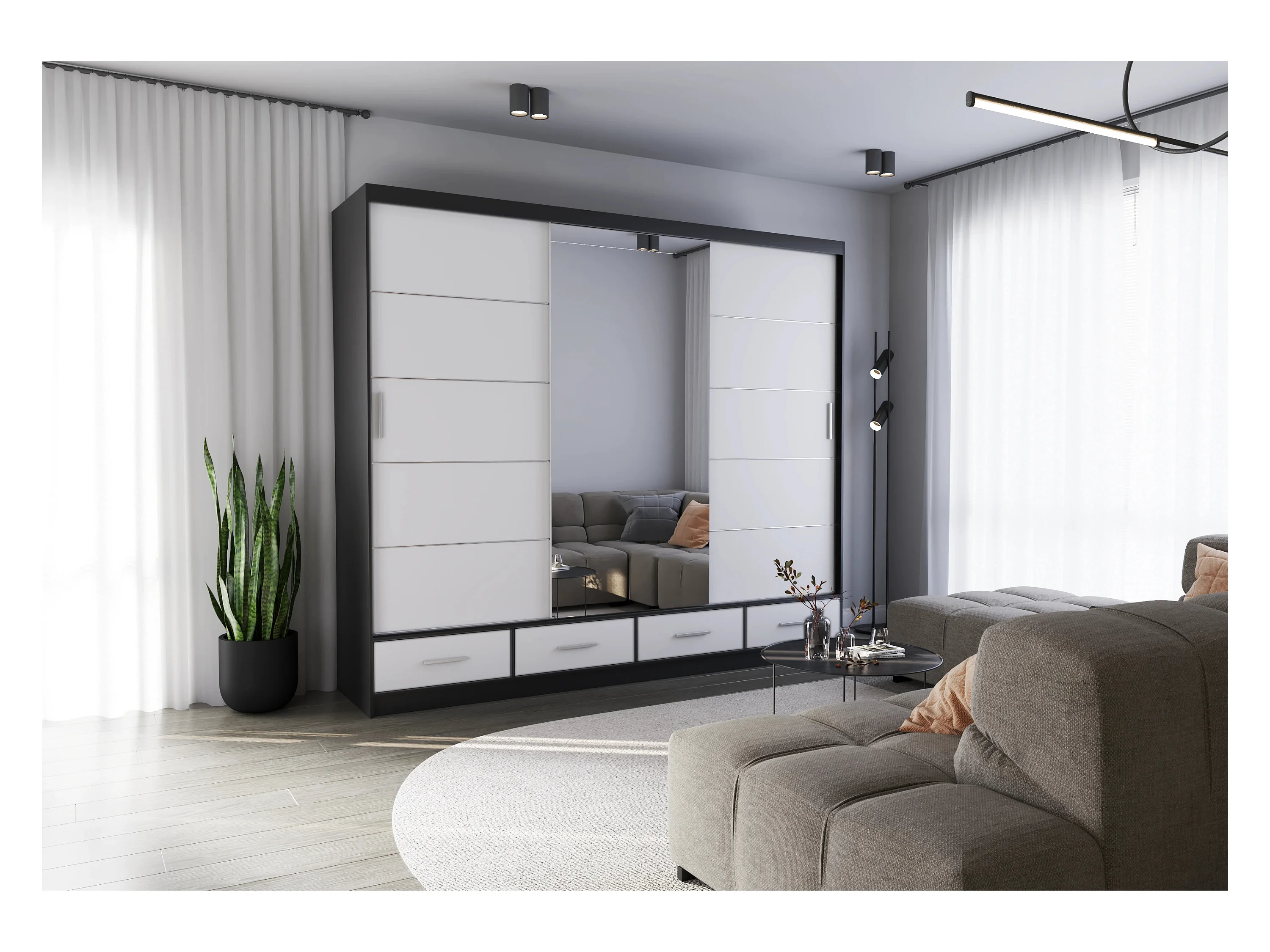 Armoire Silas 250 cm avec miroir - Noir - Blanc