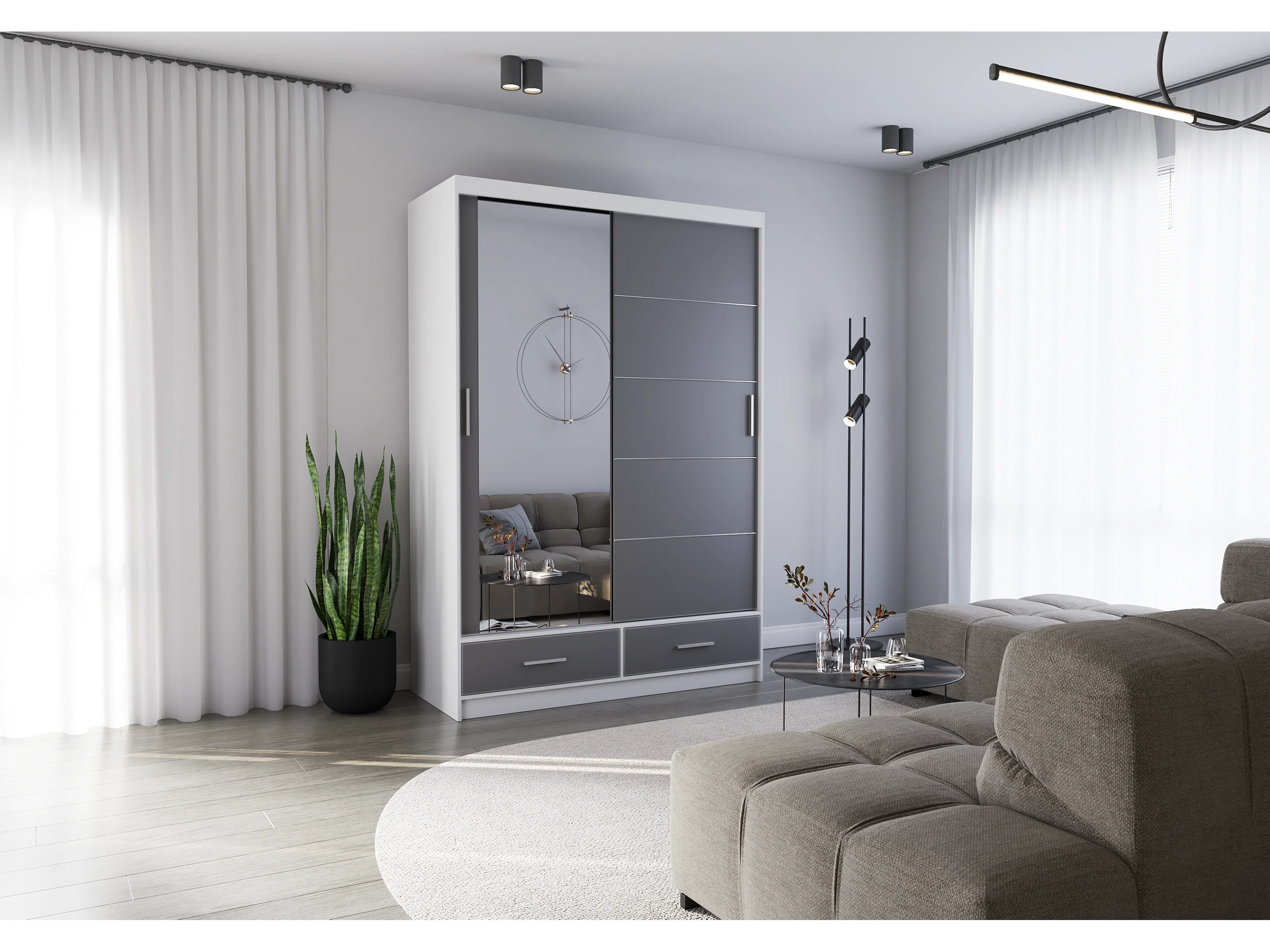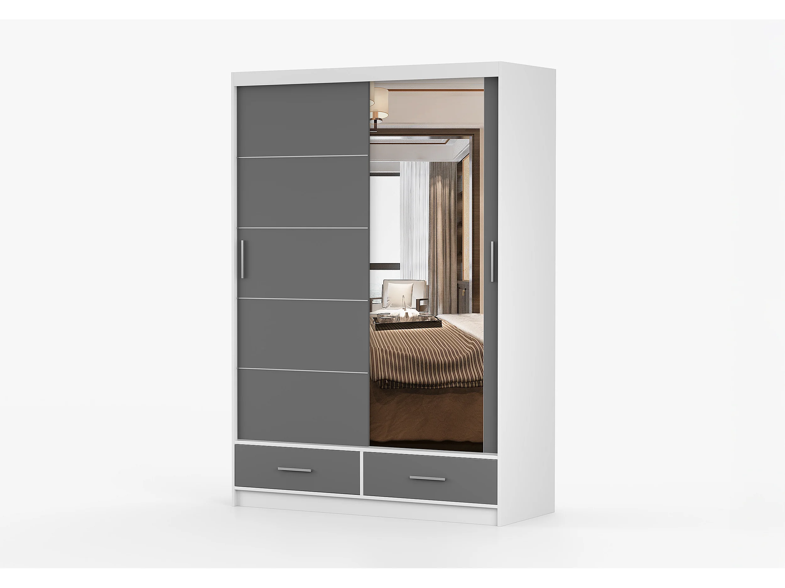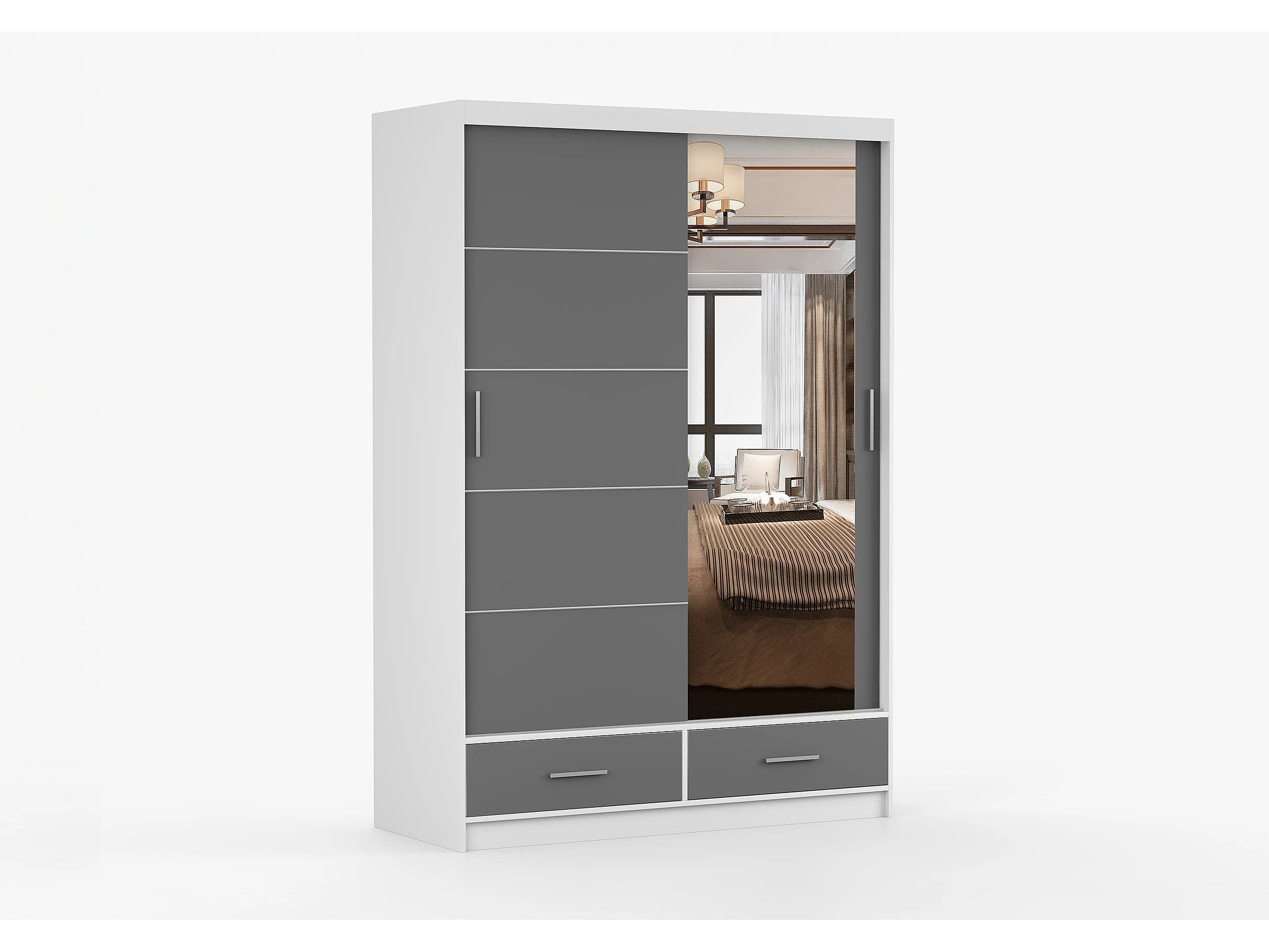 Armoire Silvana 150 cm avec miroir - Blanc - Gris