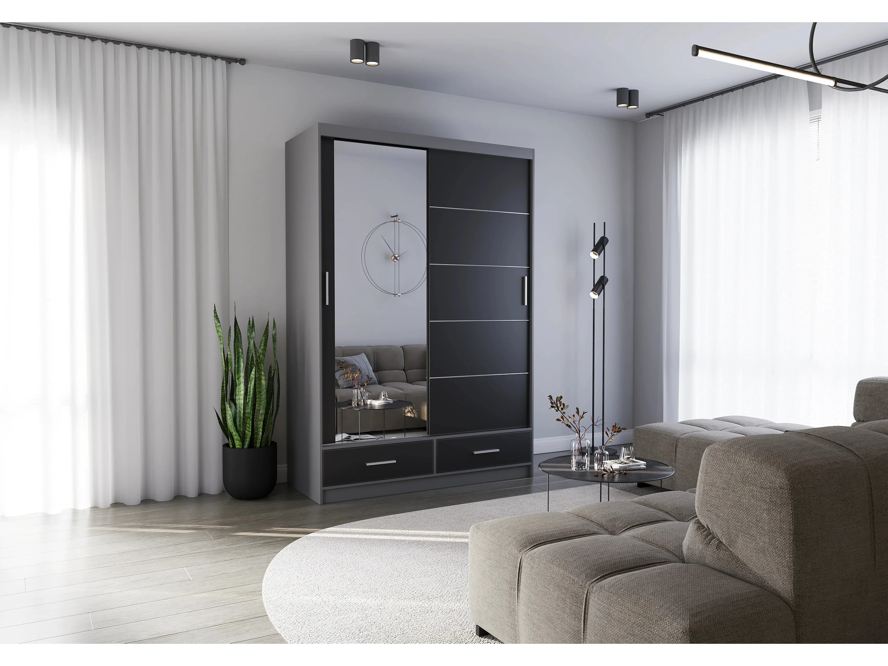 Armoire Silvana 150 cm avec miroir - Gris - Noir