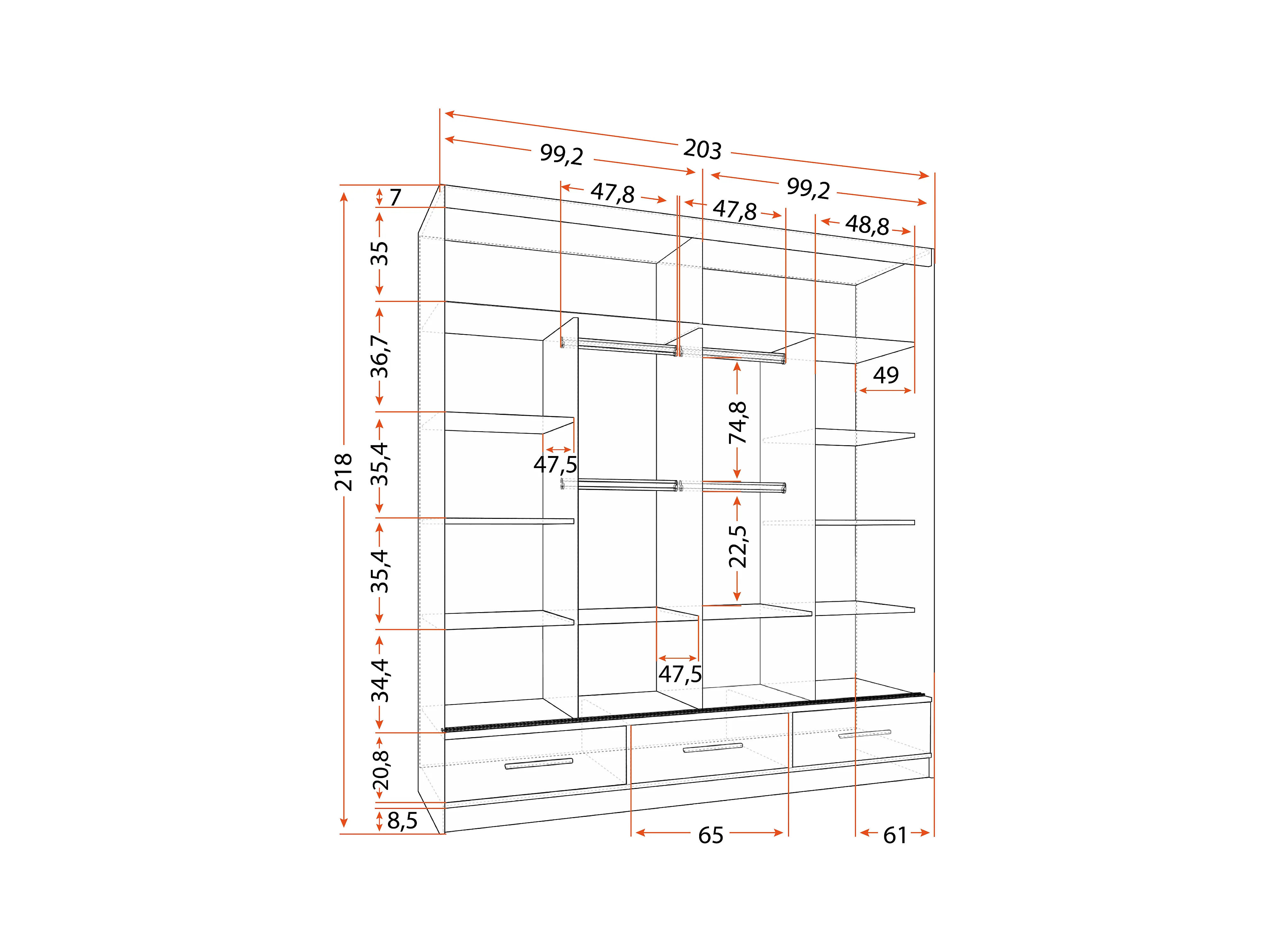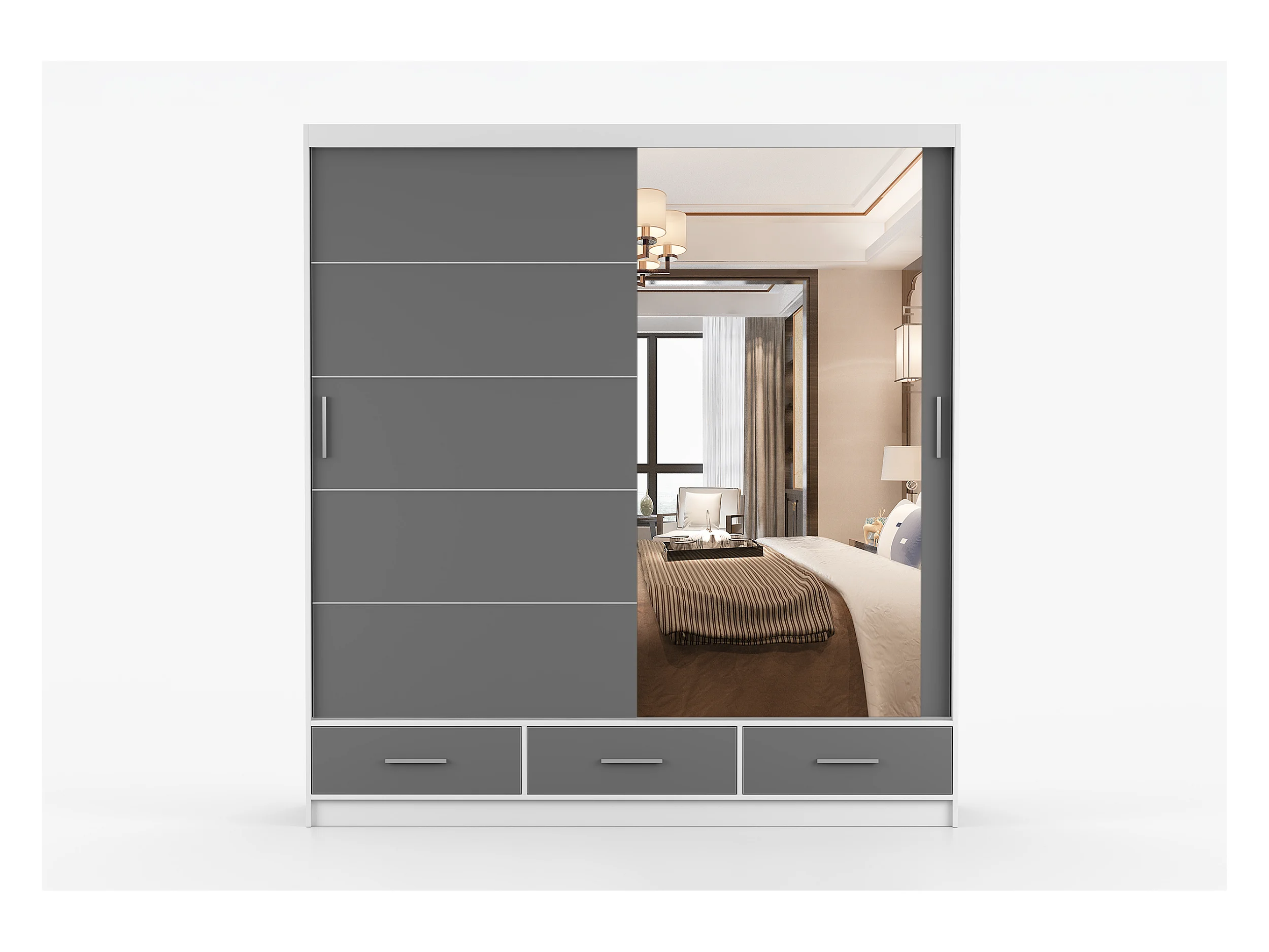 Armoire Solian 203 cm avec miroir - Blanc - Gris