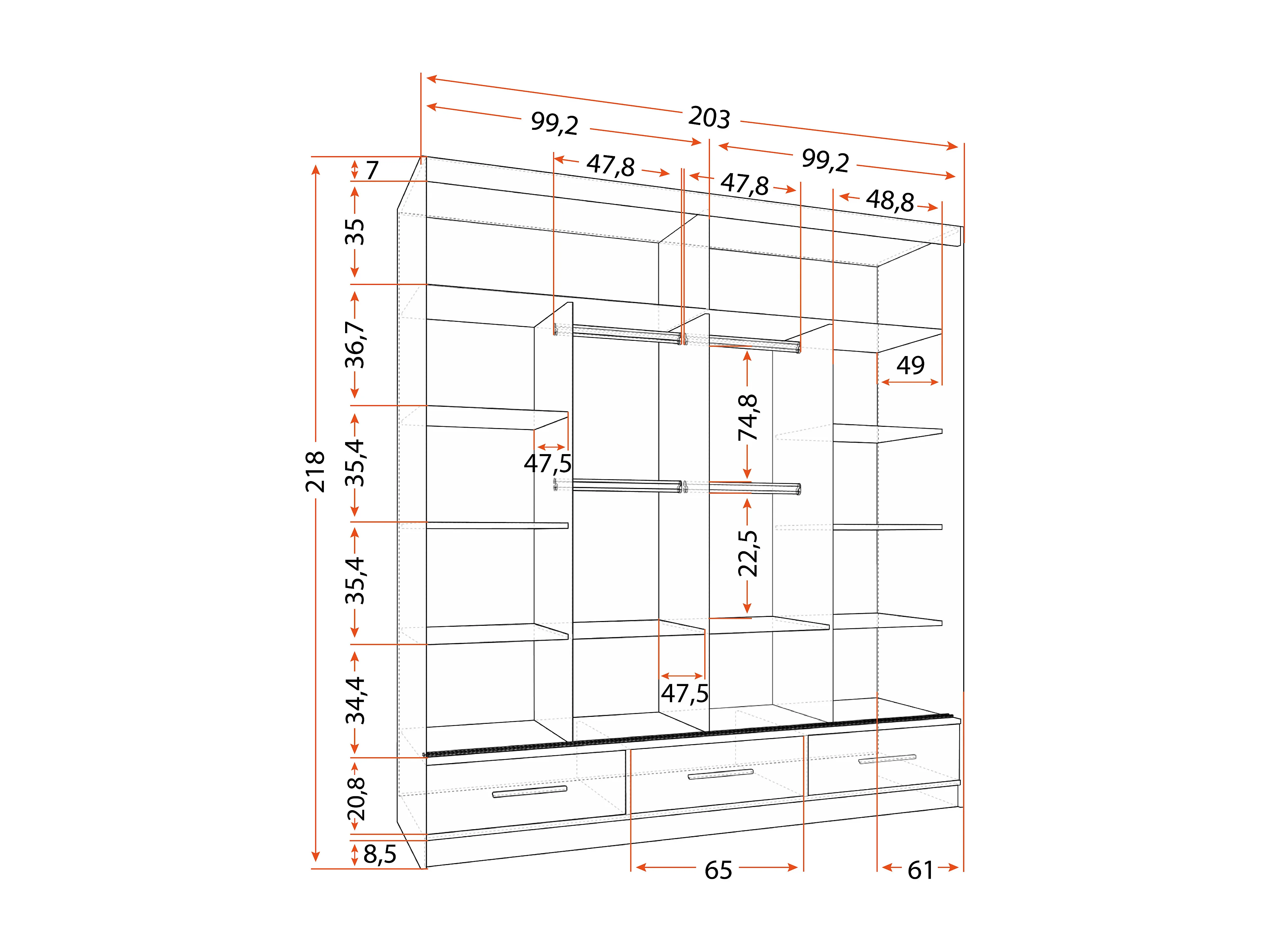 Armoire Solian 203 cm avec miroir - Blanc - Noir