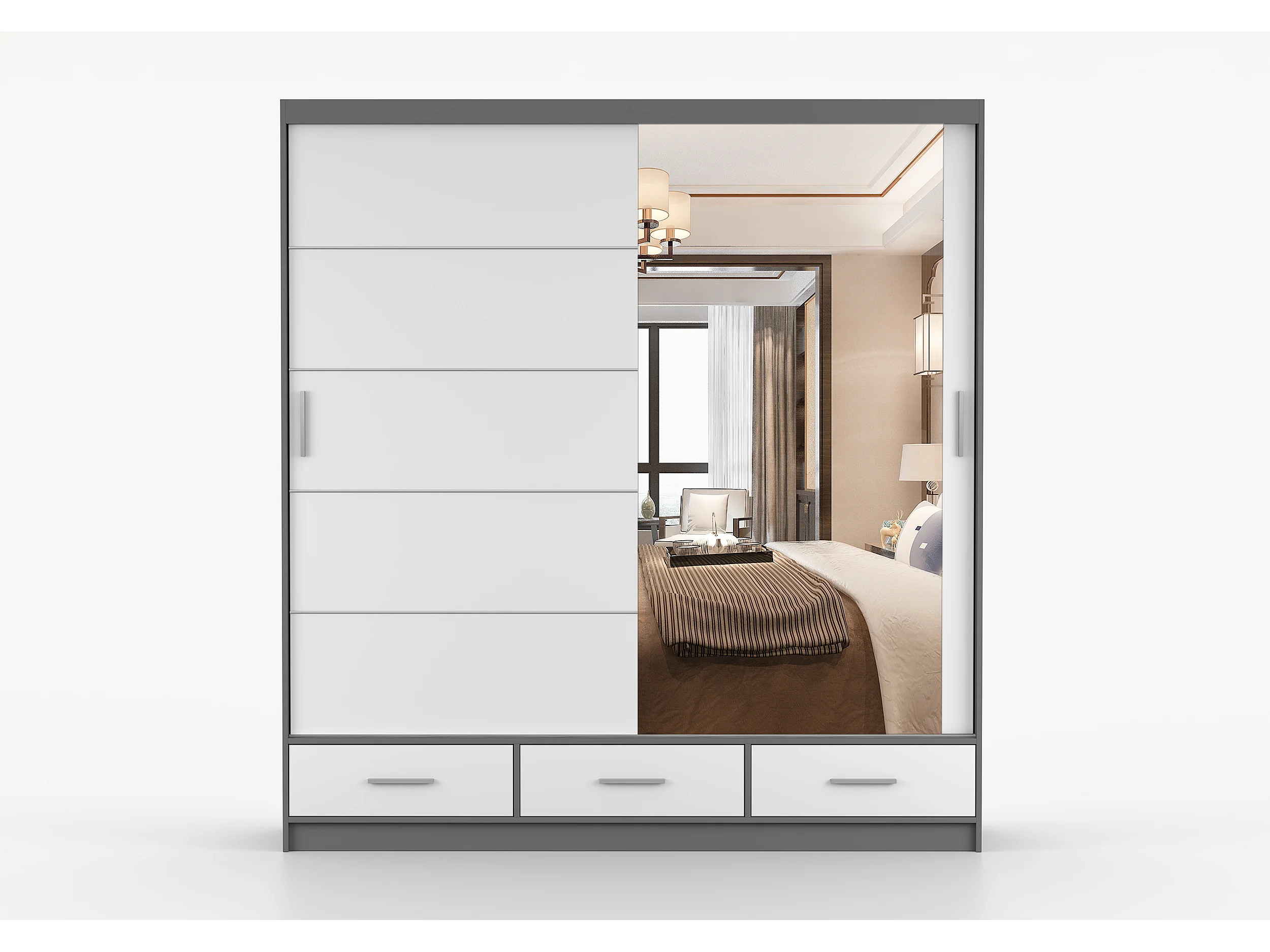 Armoire Solian 203 cm avec miroir - Gris - Blanc