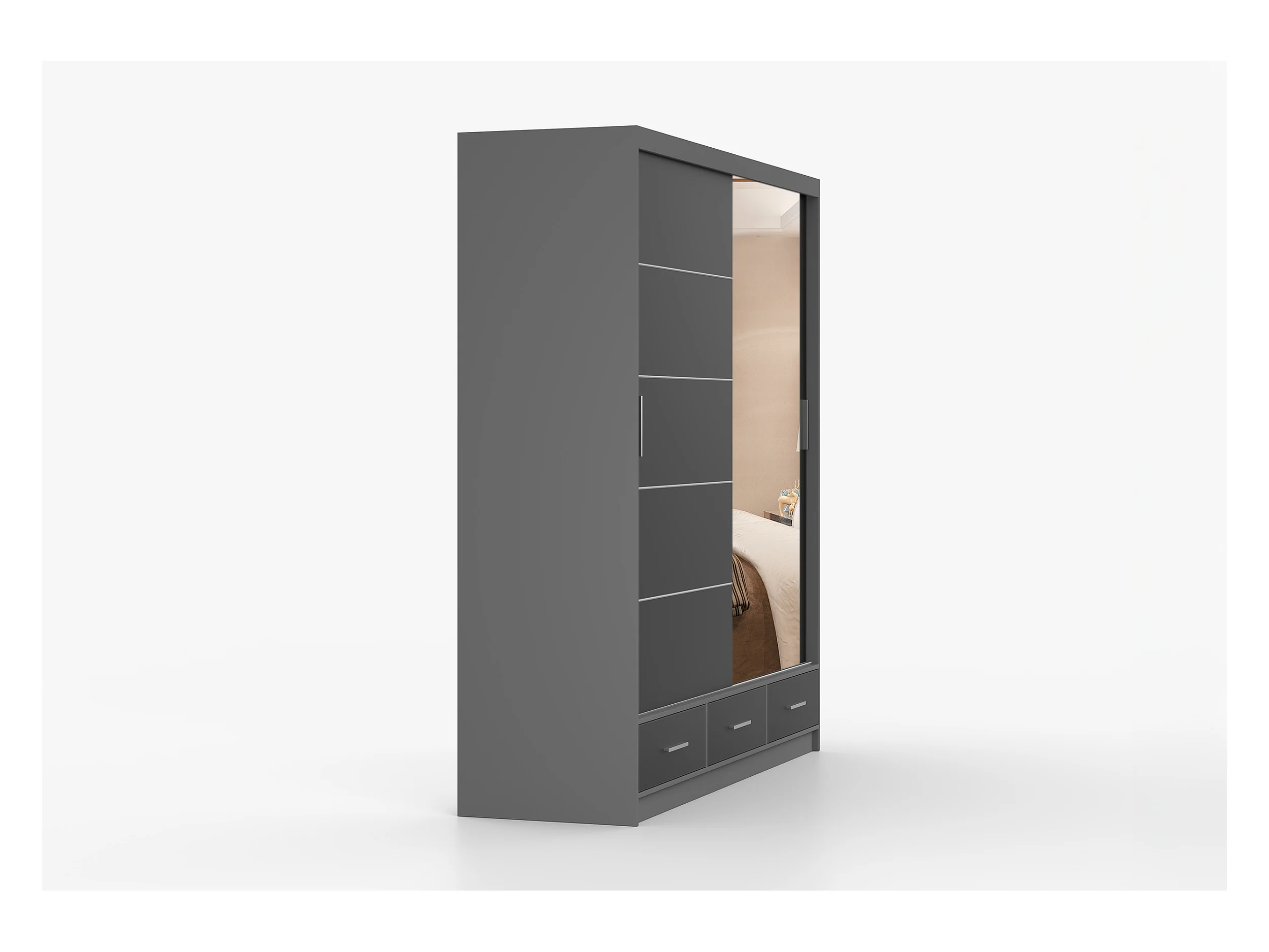 Armoire Solian 203 cm avec miroir - Gris - Noir