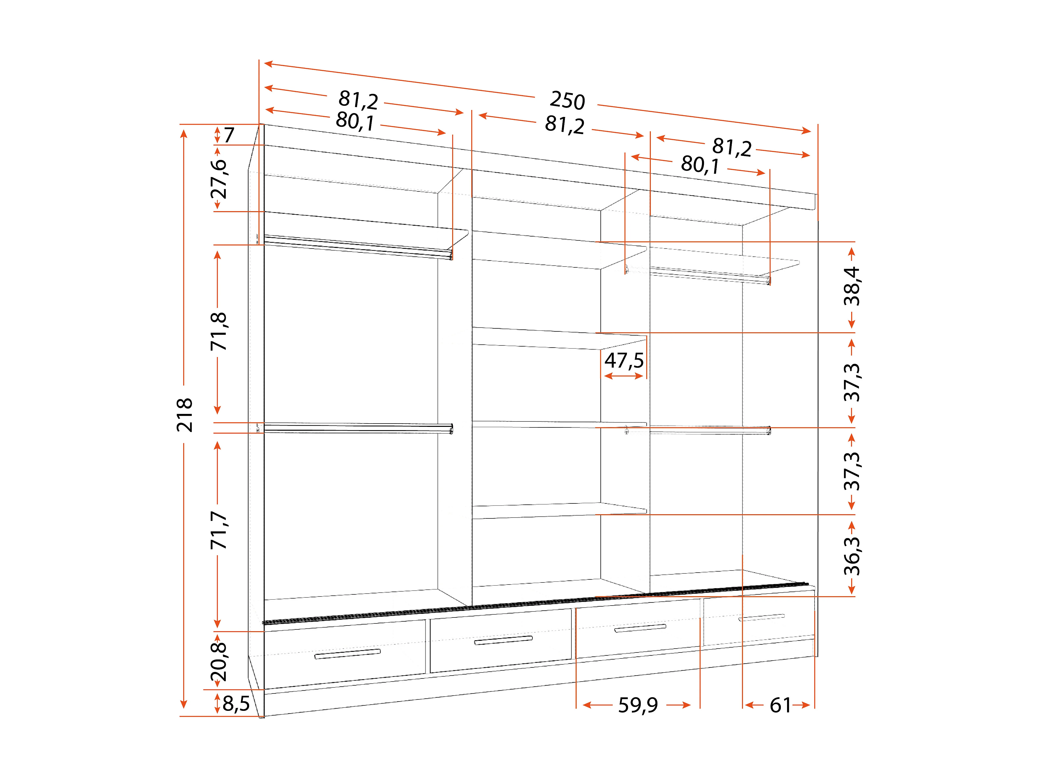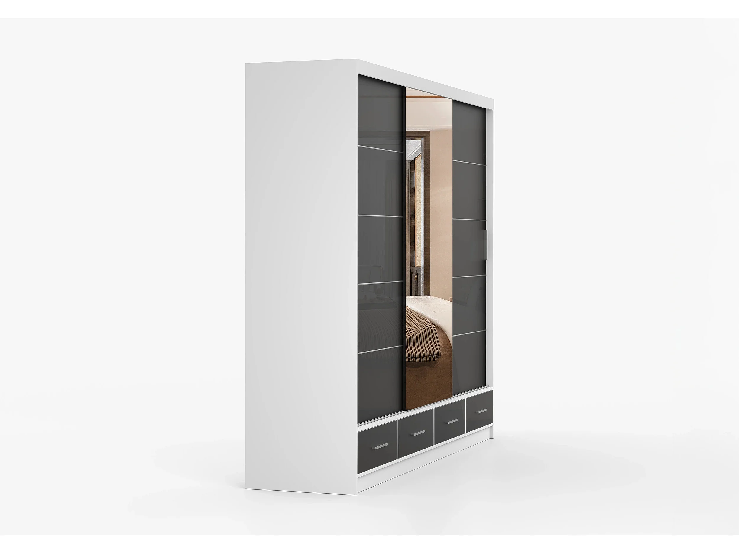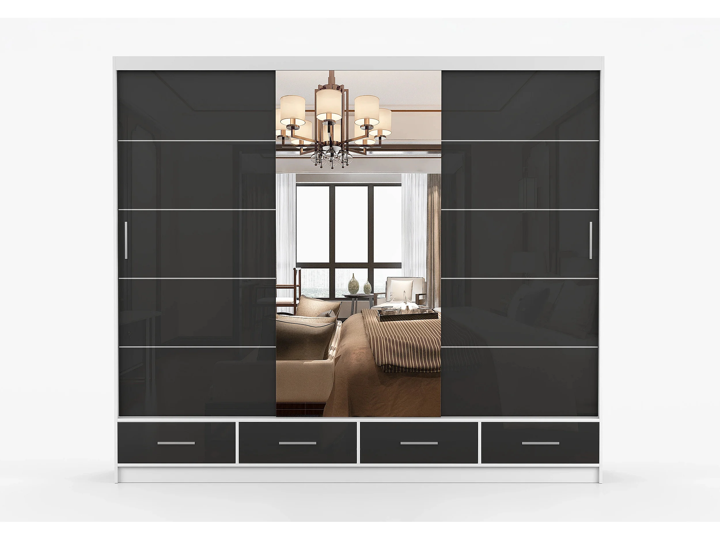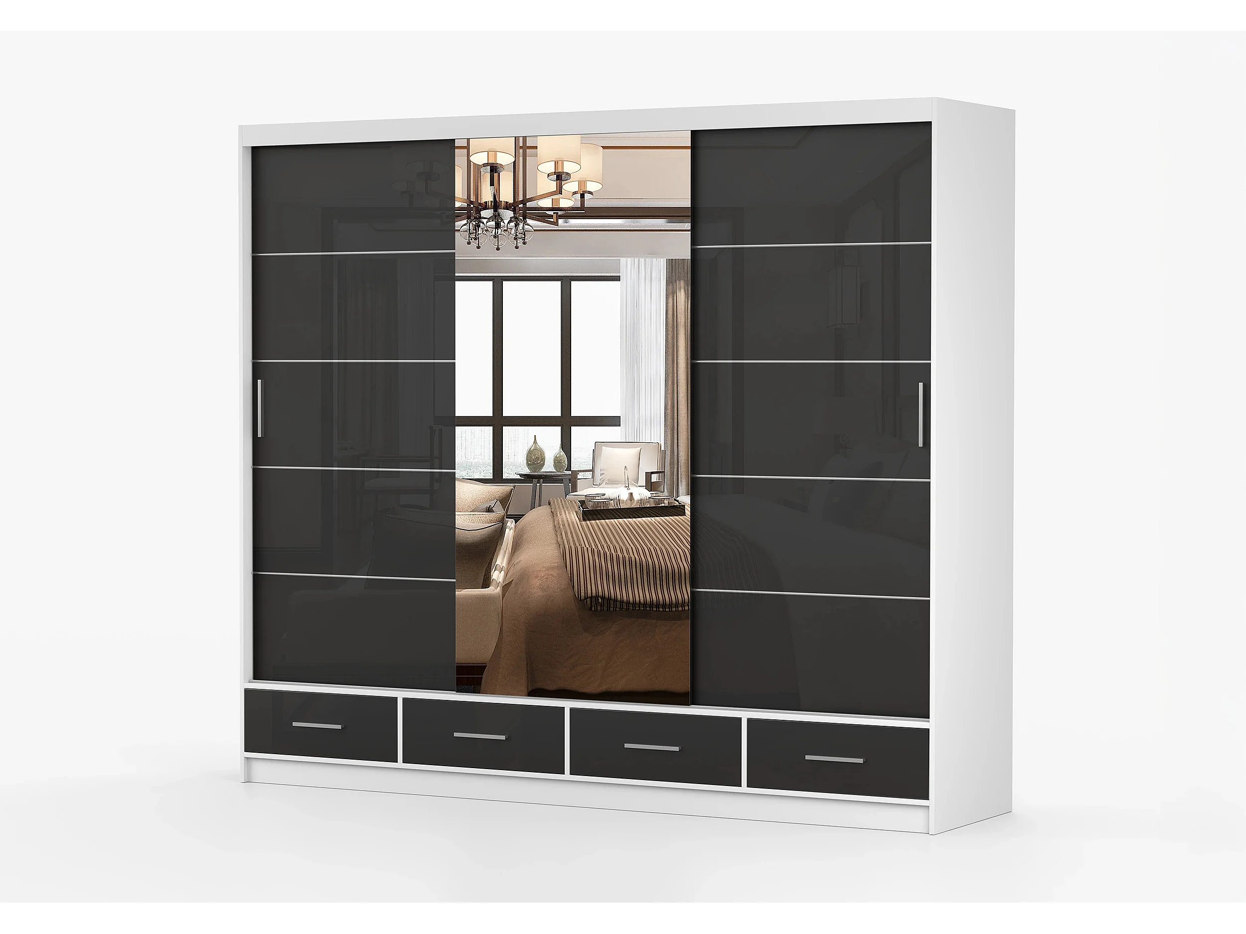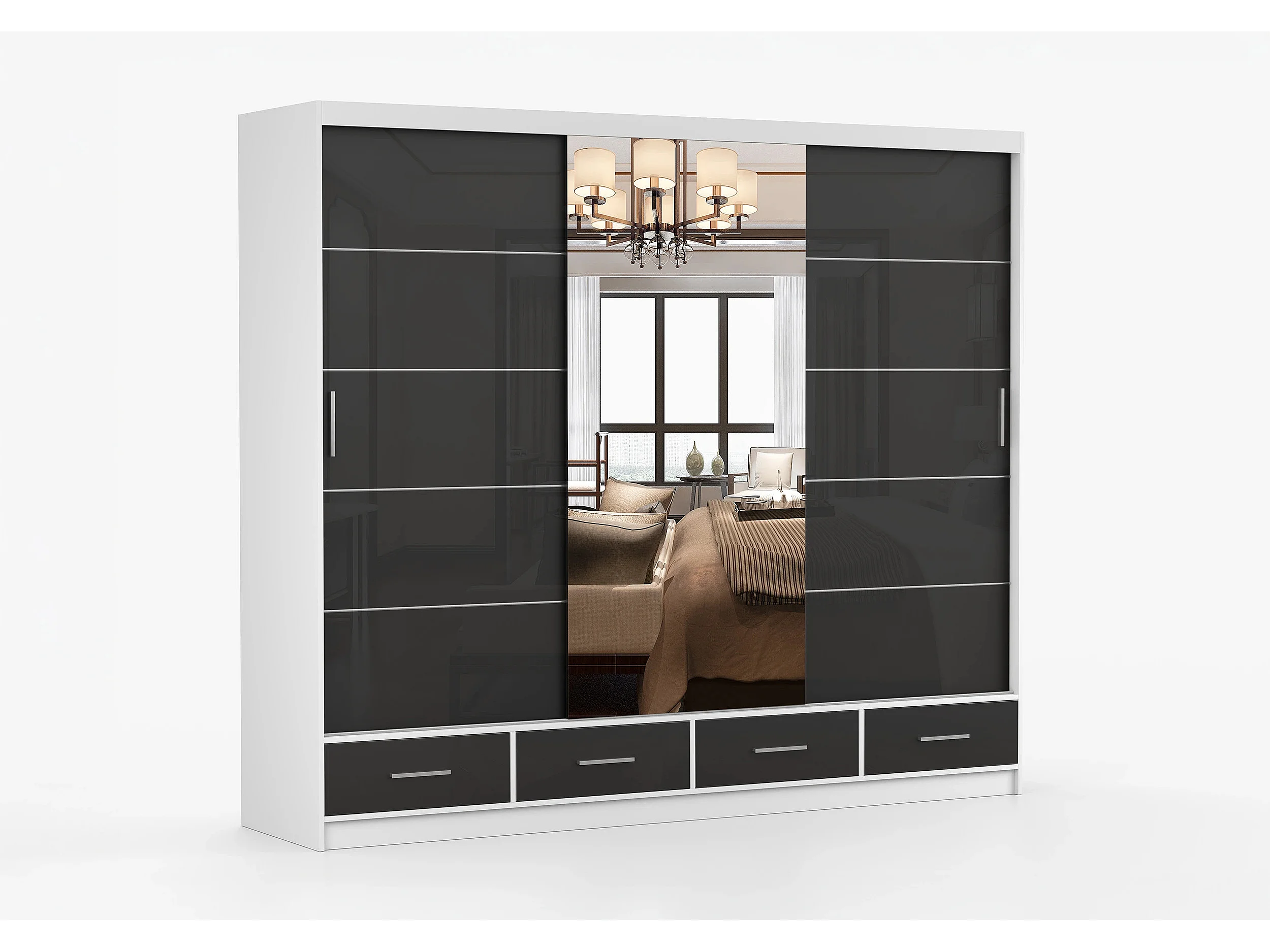 Armoire Soren 250 cm avec miroir - Blanc - Noir