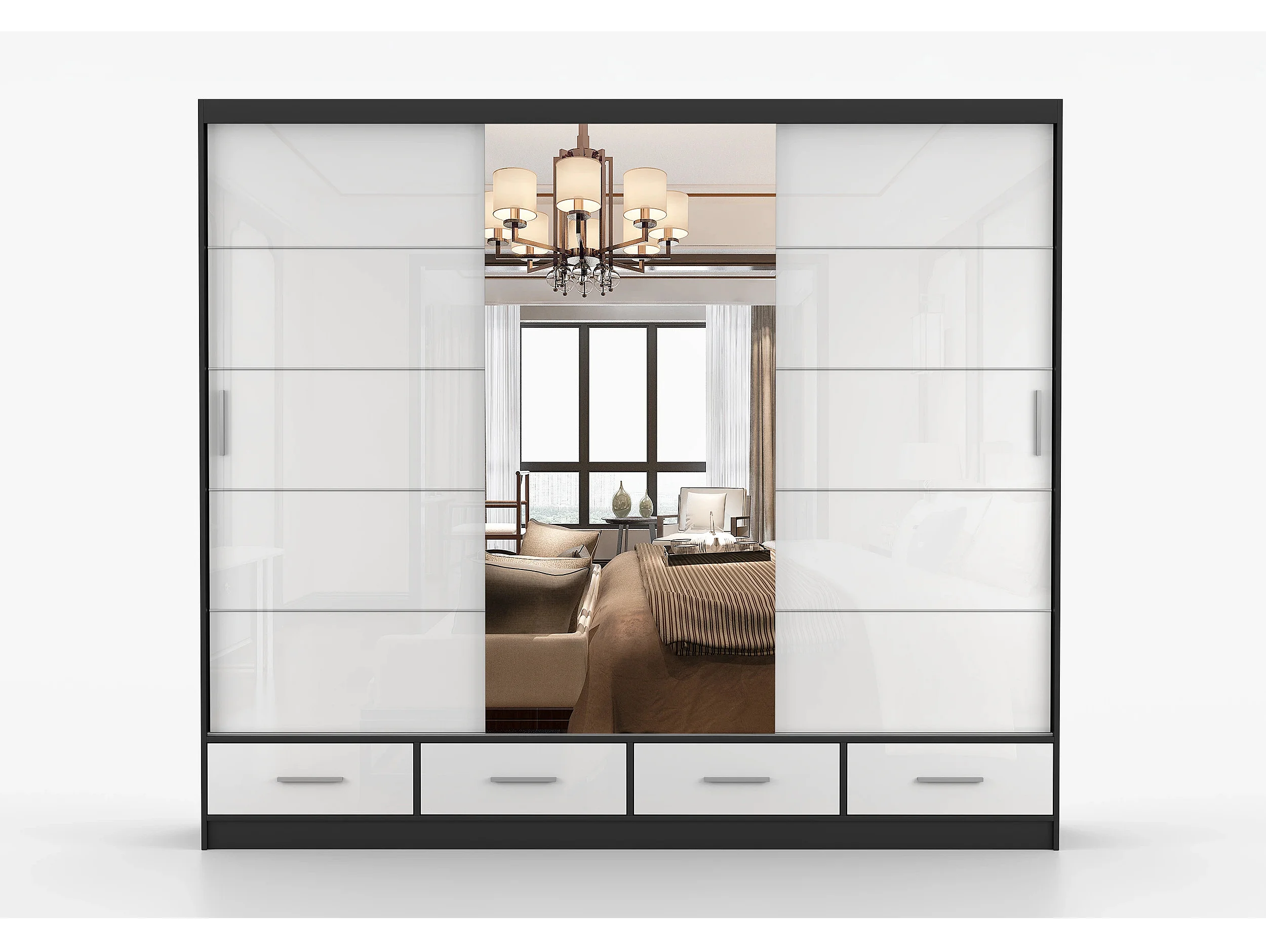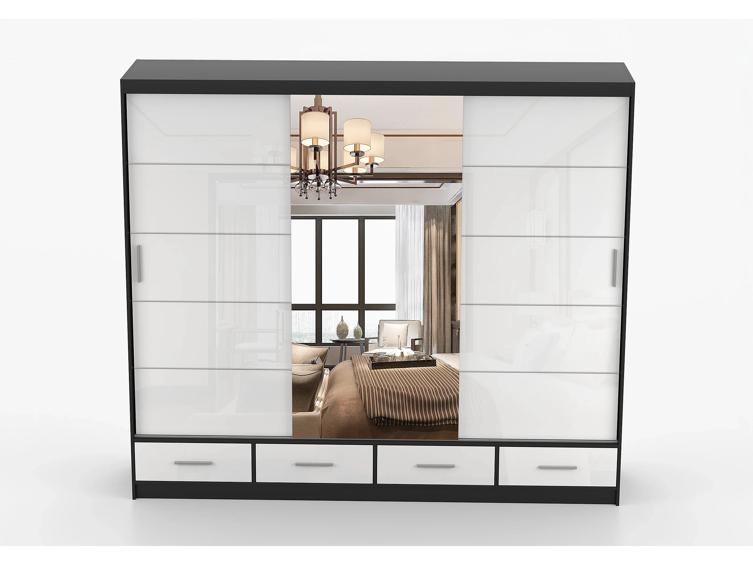 Armoire Soren 250 cm avec miroir - Noir - Blanc