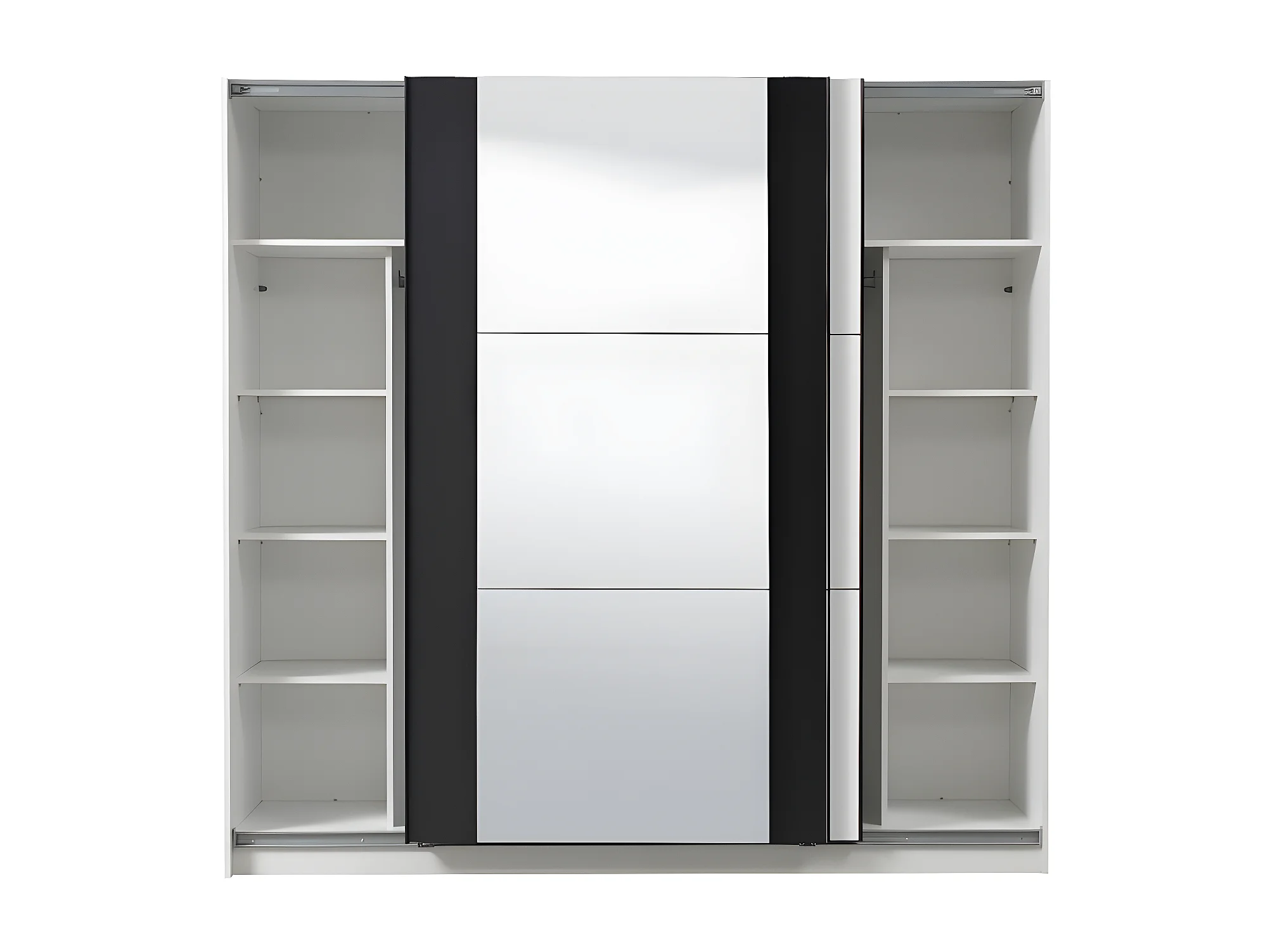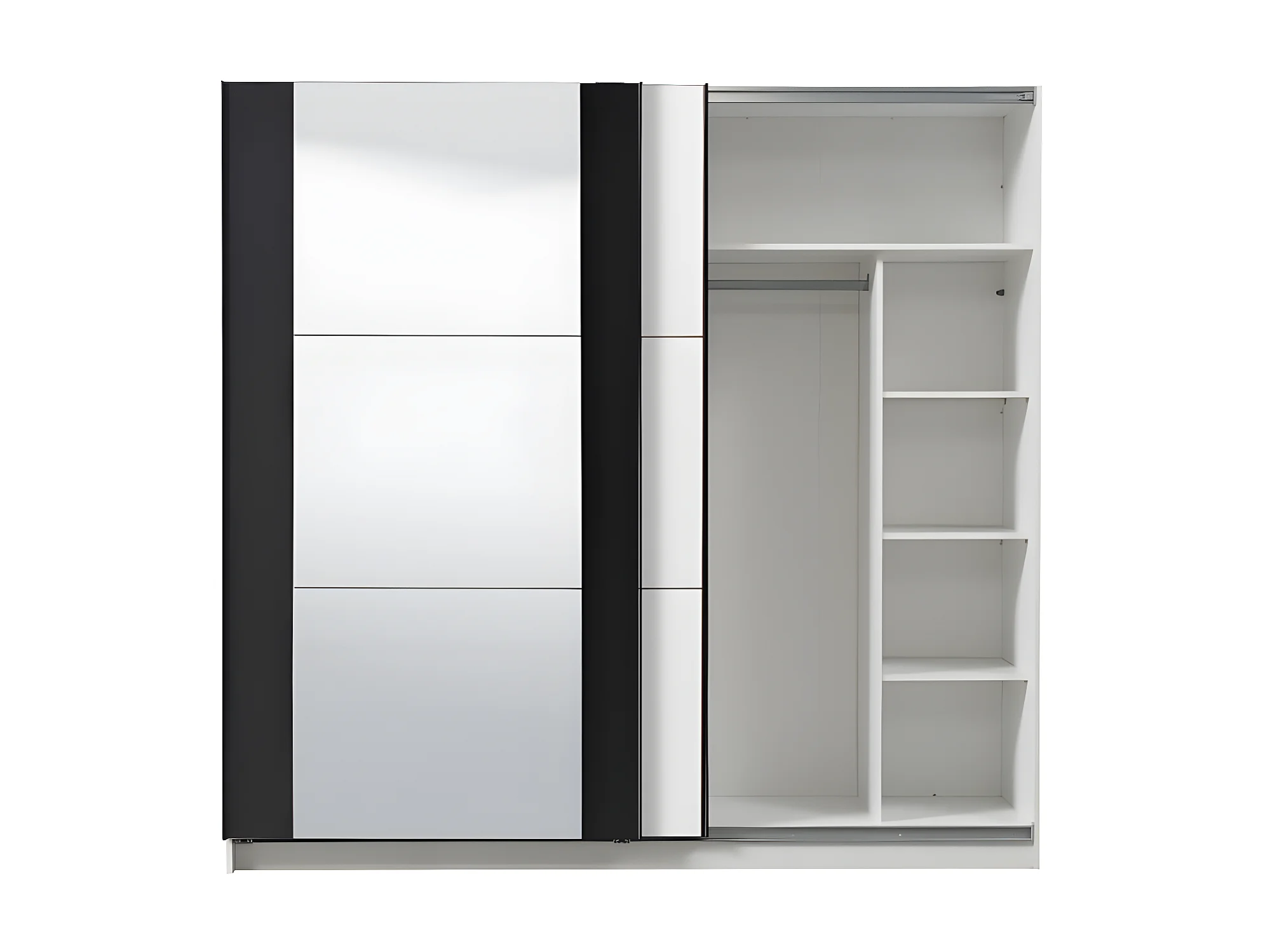 Armoire SUTERA - 2 portes coulissantes - Avec miroir - L.217 cm - Blanc et noir