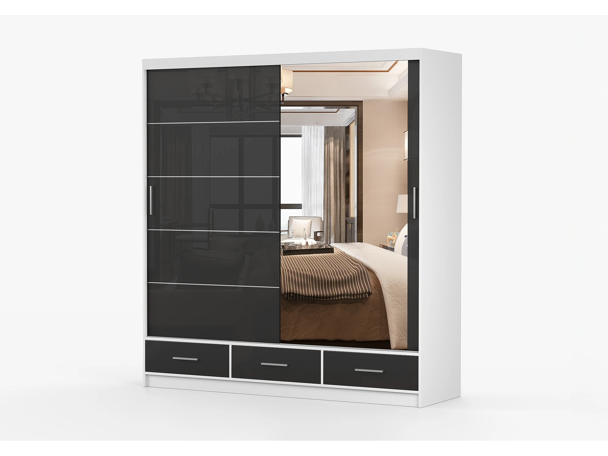Armoire Sylar 203 cm avec miroir - Blanc - Noir
