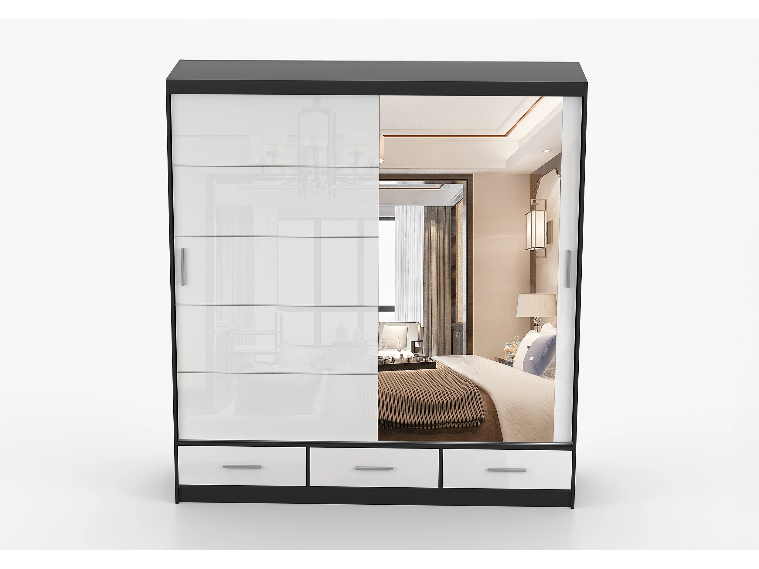 Armoire Sylar 203 cm avec miroir - Noir - Blanc