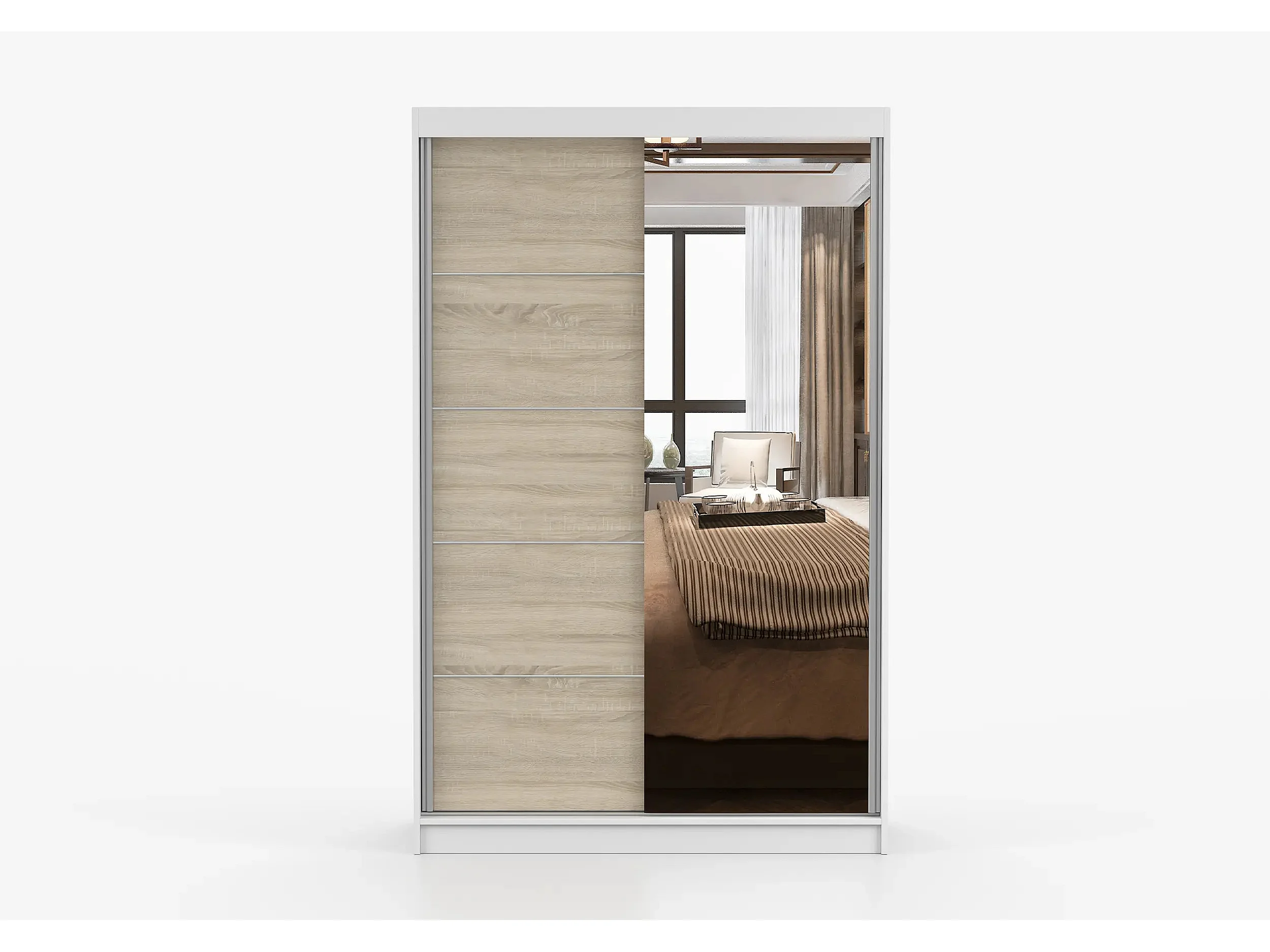 Armoire Syra 120 cm avec miroir - Blanc - Chêne