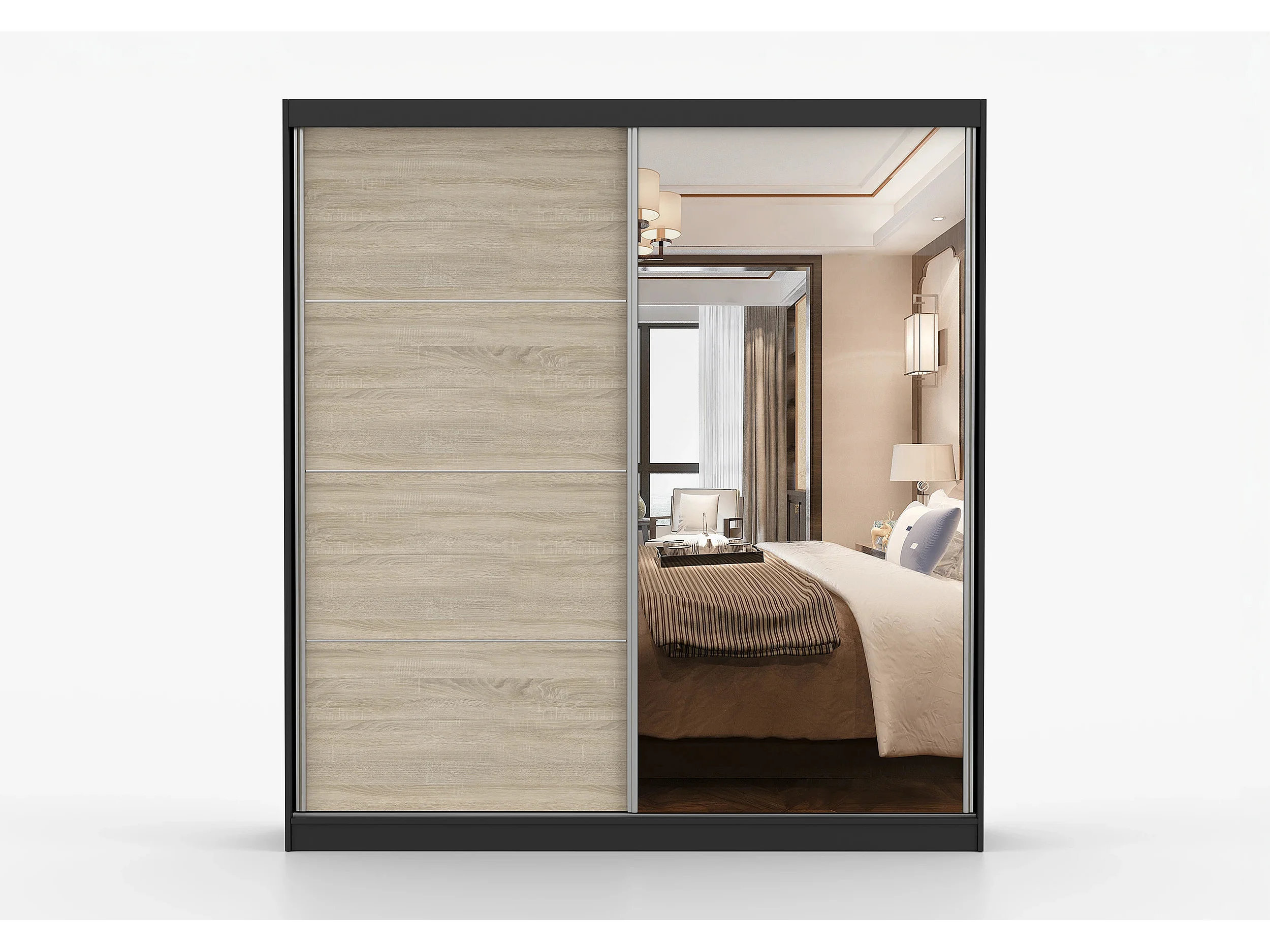 Armoire Tais 203 cm avec miroir - Noir - Chêne