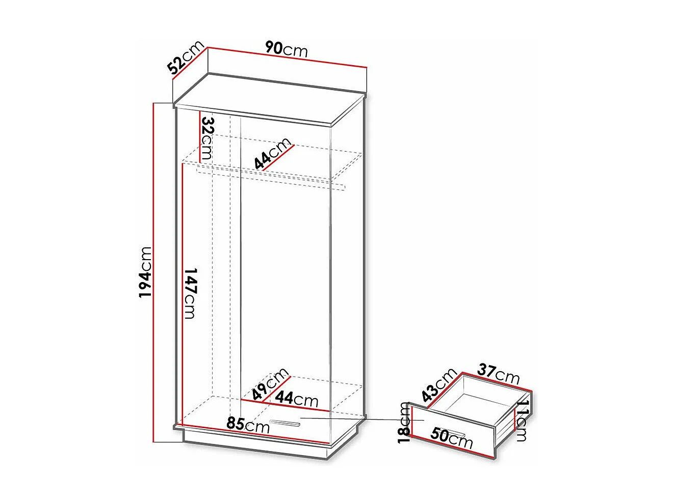 Armoire Tenodeu 100, Chêne wotan|Noir, 194x90x52cm, Portes d'armoire: Avec des charnières