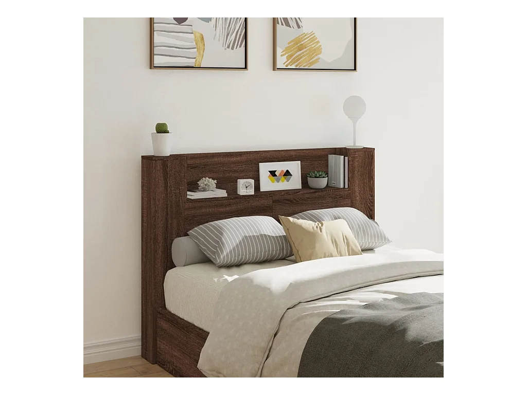 Armoire tête de lit avec LED chêne marron 140x16,5x103,5 cm