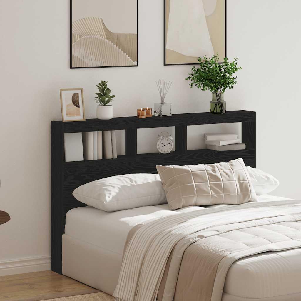 Armoire tête de lit avec LED chêne noir 160x17x102 cm