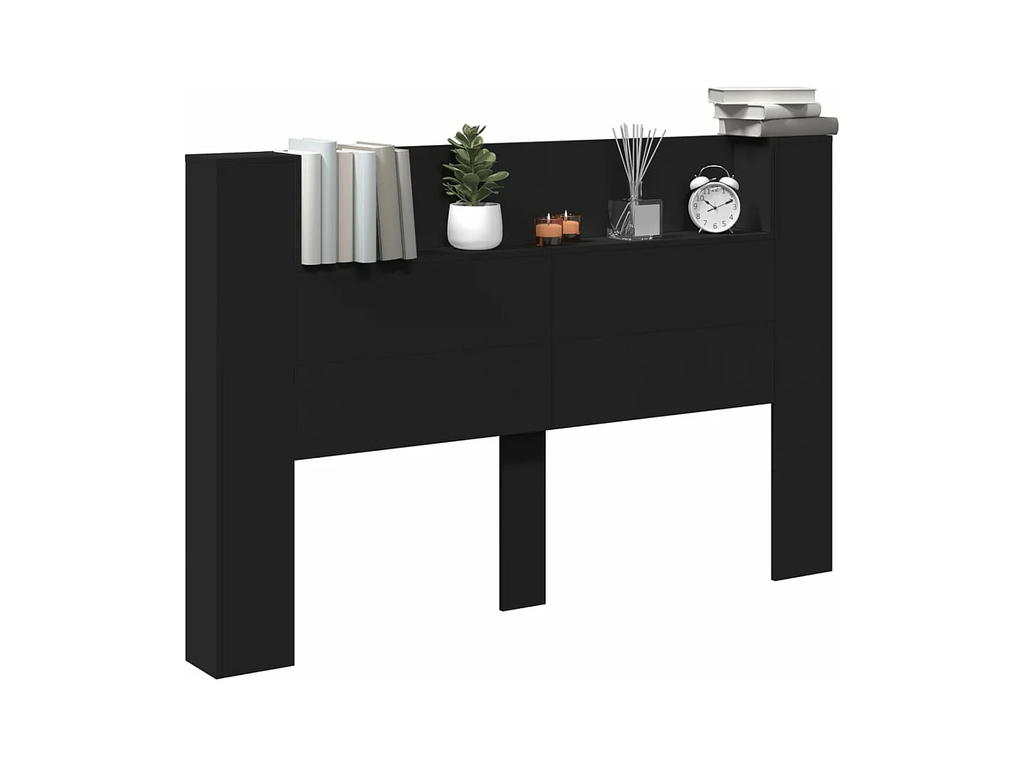 Armoire tête de lit avec LED noir 160x16,5x103,5 cm