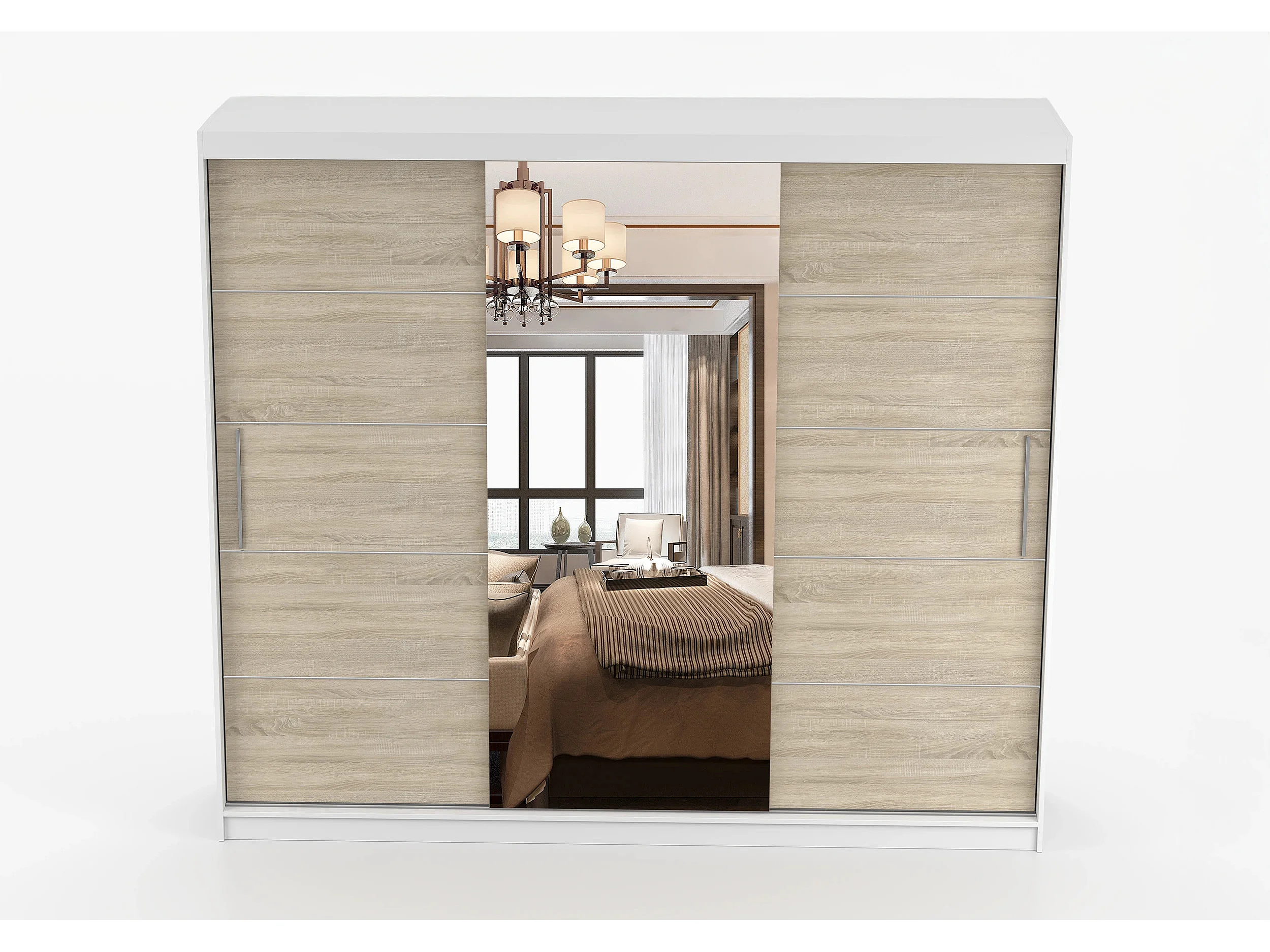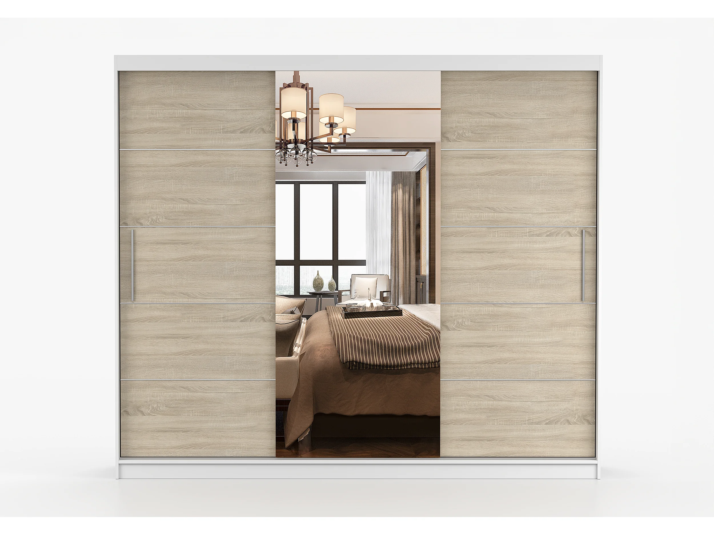 Armoire Théana avec miroir 250 cm - Blanc - Chêne