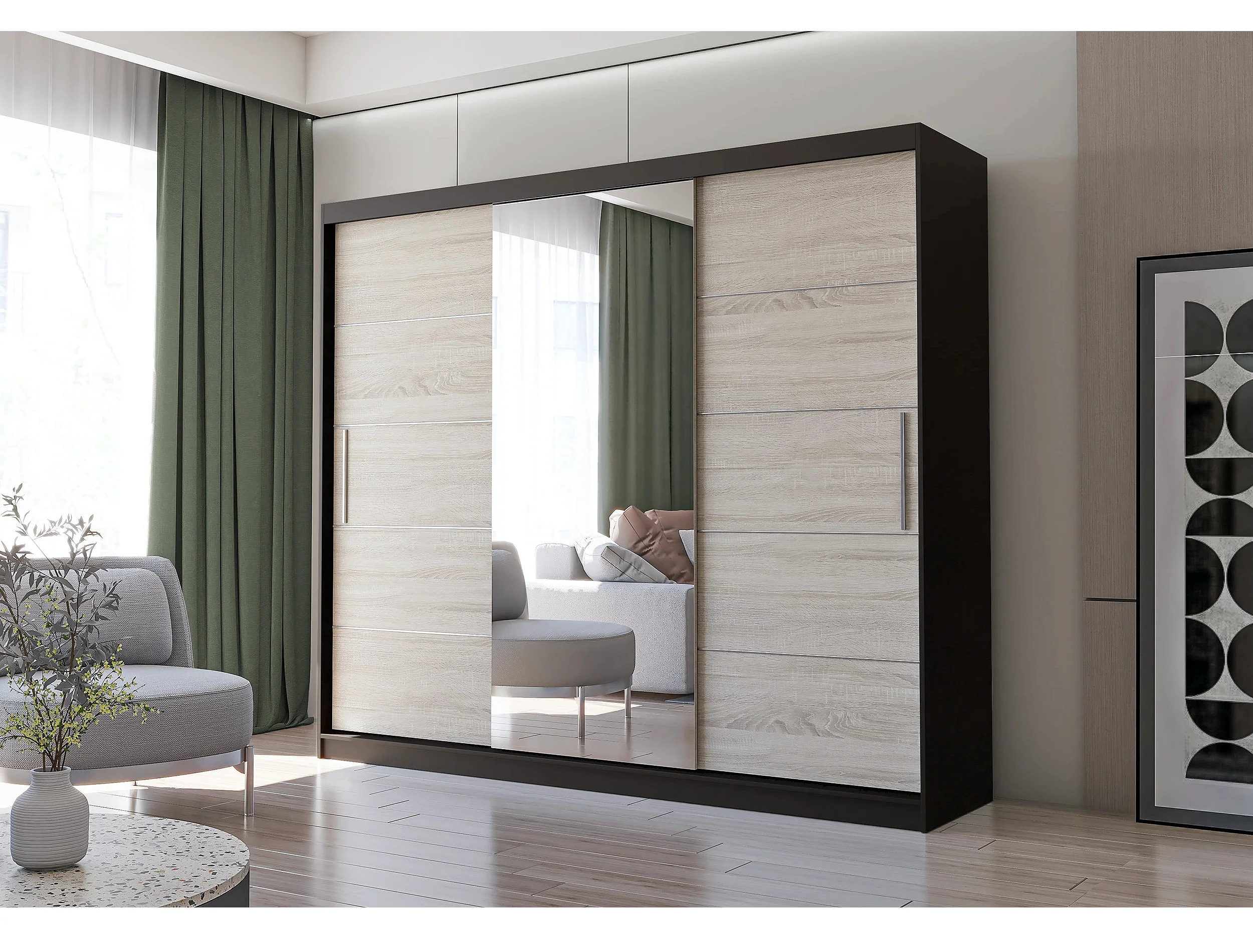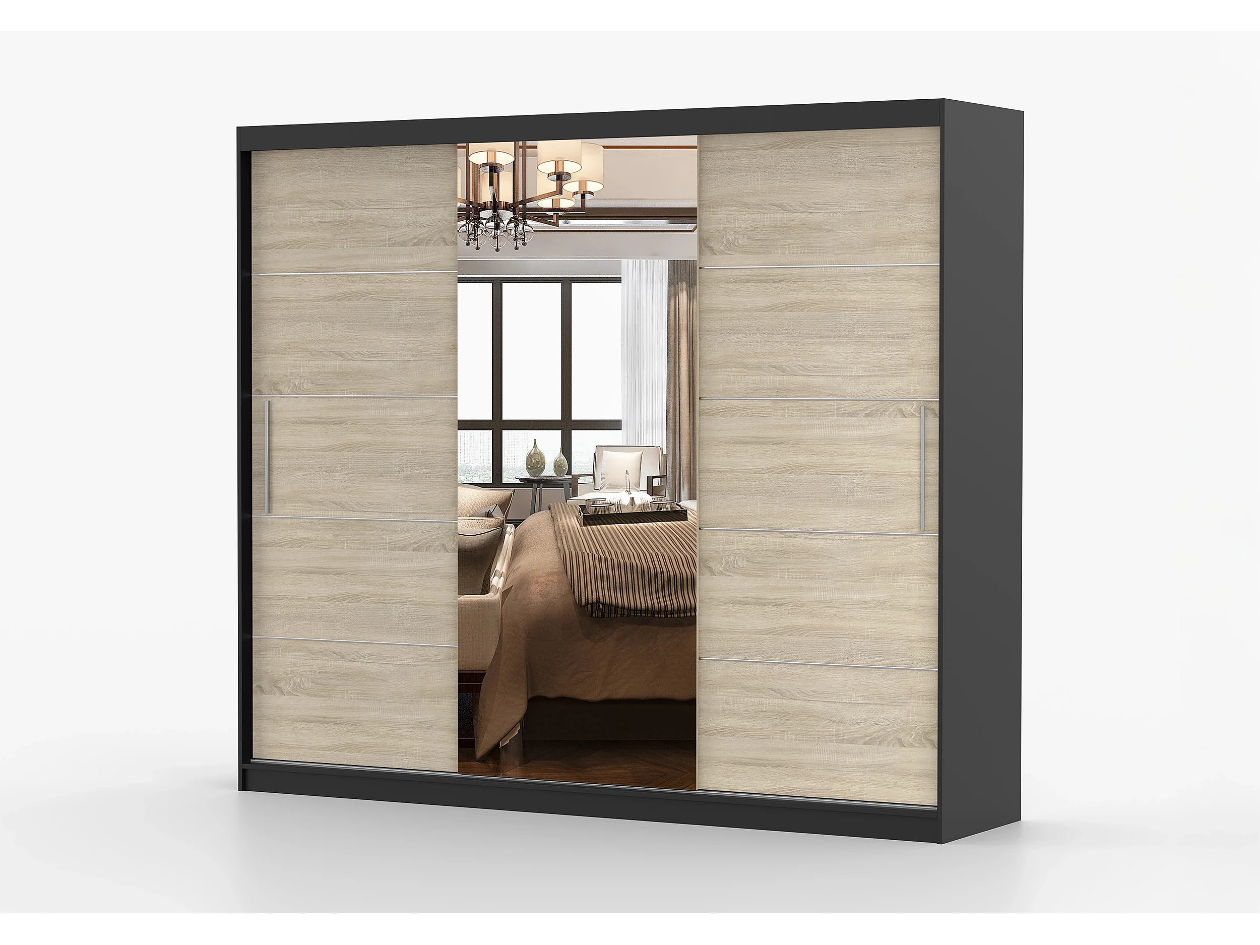 Armoire Théana avec miroir 250 cm - Noir - Chêne