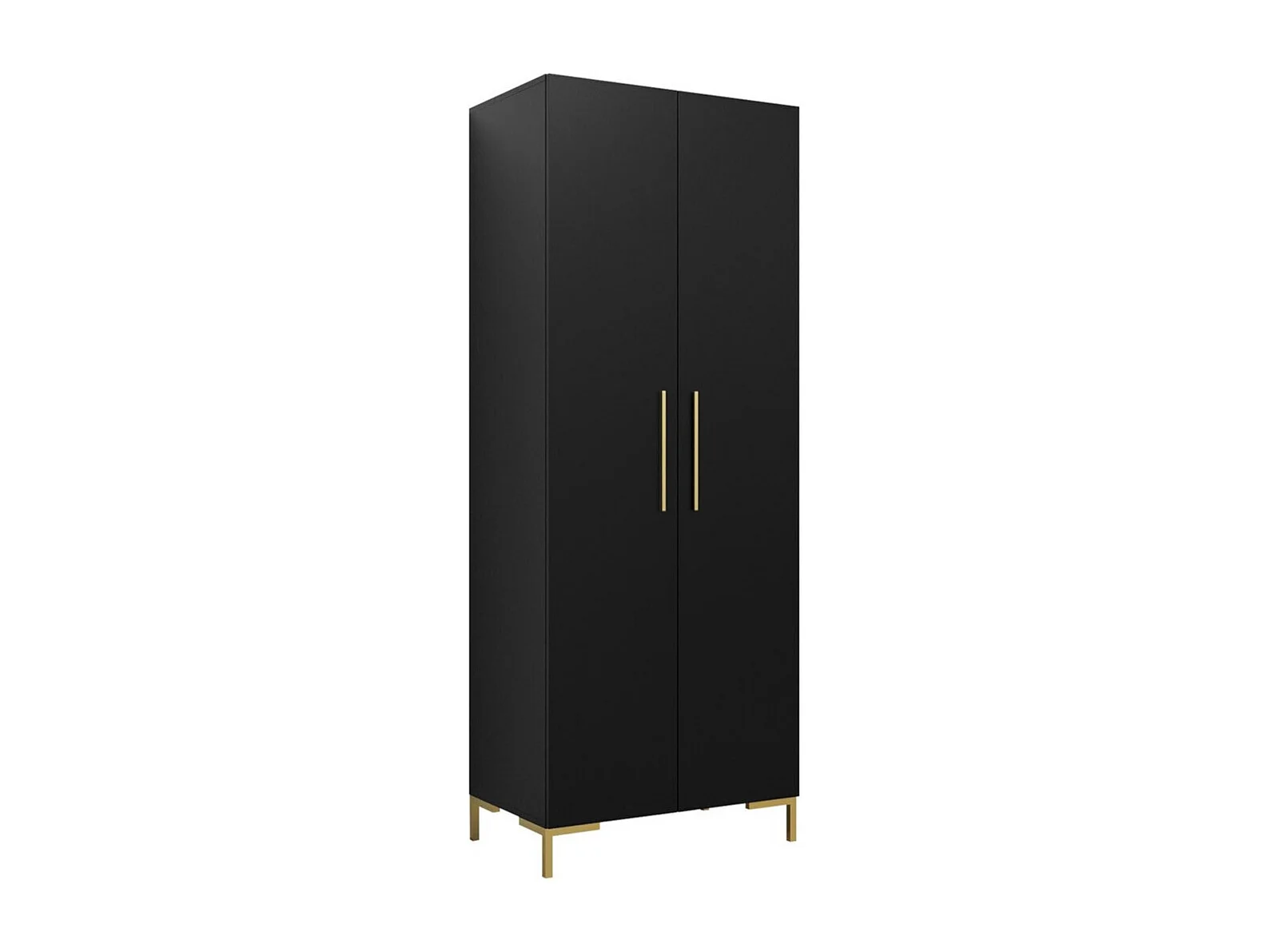 Armoire Tivsoa 109, Doré|Noir, 196x74x44cm, Portes d'armoire: Avec des charnières